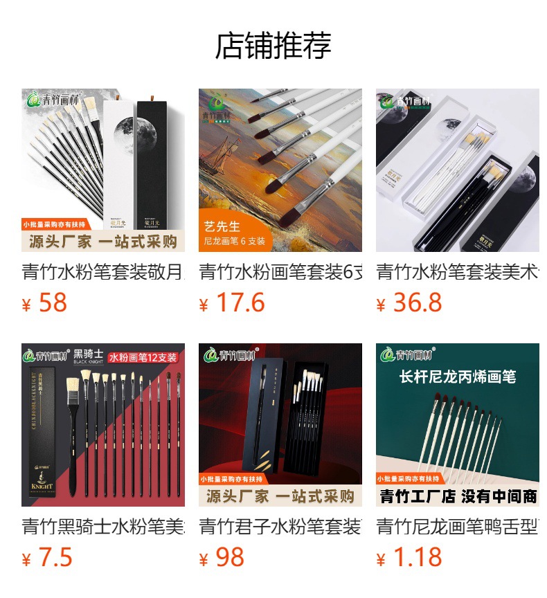 青竹画材尼龙画笔绘画笔套装尼龙绘画笔手绘排笔笔刷 尼龙画笔6只