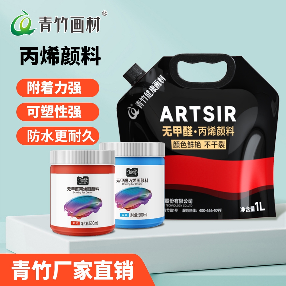 グリーン竹アクリルペイントセット卸売 1L 袋入りチタンプラチナ日焼け止め缶詰ボトル石膏人形壁画アクリルペイント