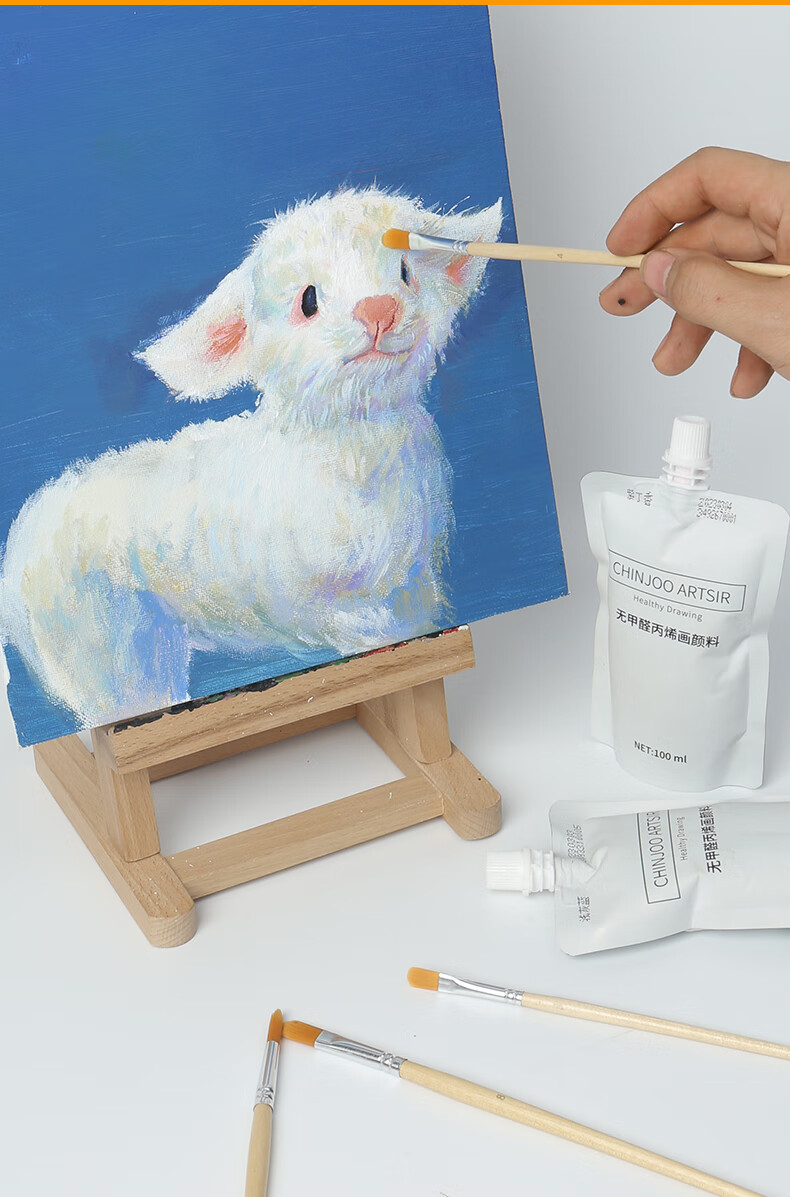 青竹アクリル絵の具缶诘め替え美术生童防水100ml大容量パール色壁絵絵の具