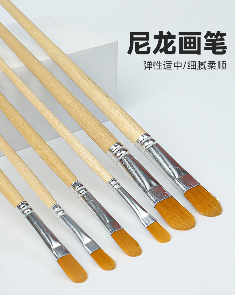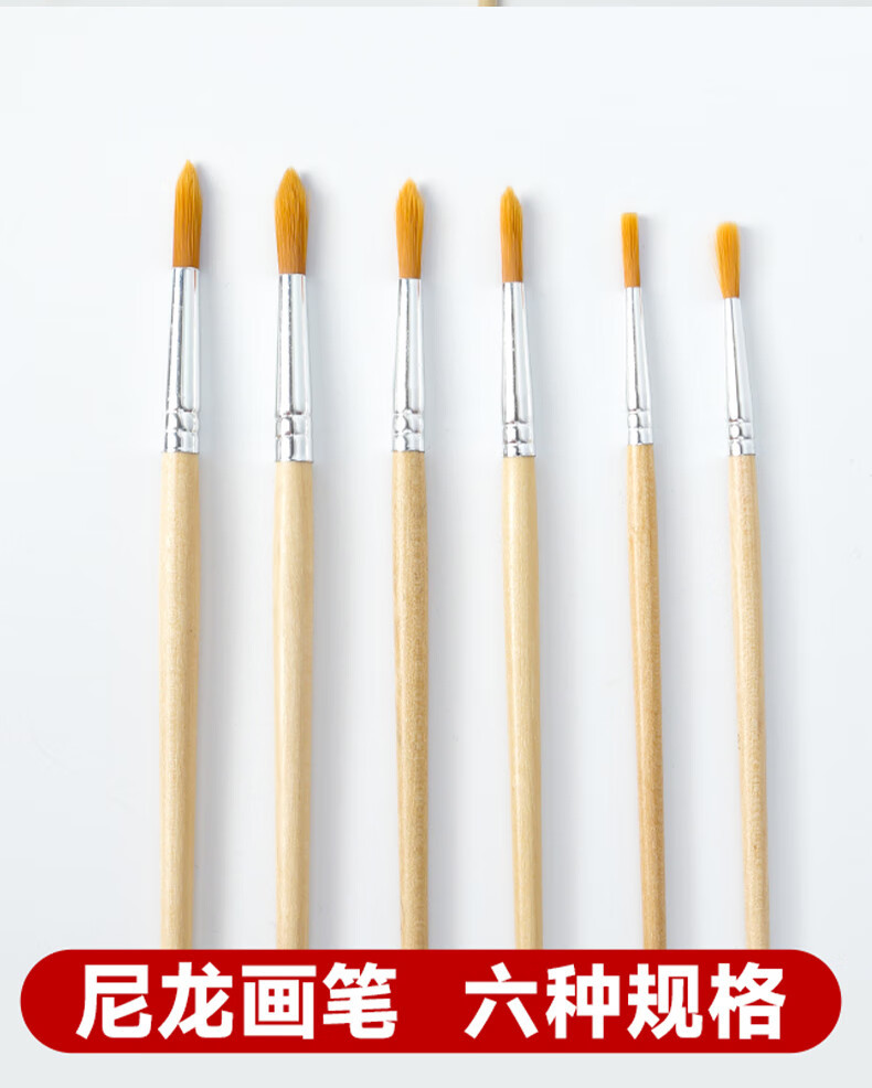 画笔颜色 尼龙画笔6支装-平头,尼龙画笔6支装-圆头,尼龙画笔6支装-尖头