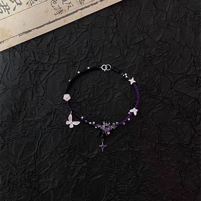 新中式紫色小恶魔蝴蝶手链秋冬十字高颜值显白时尚手链和