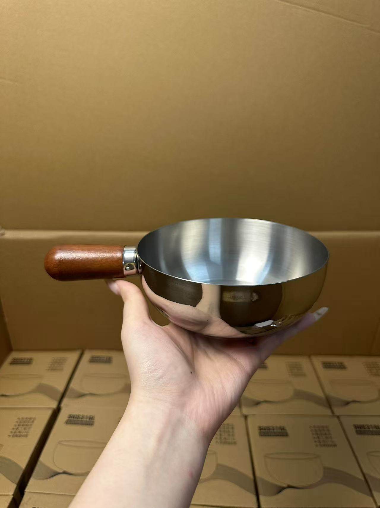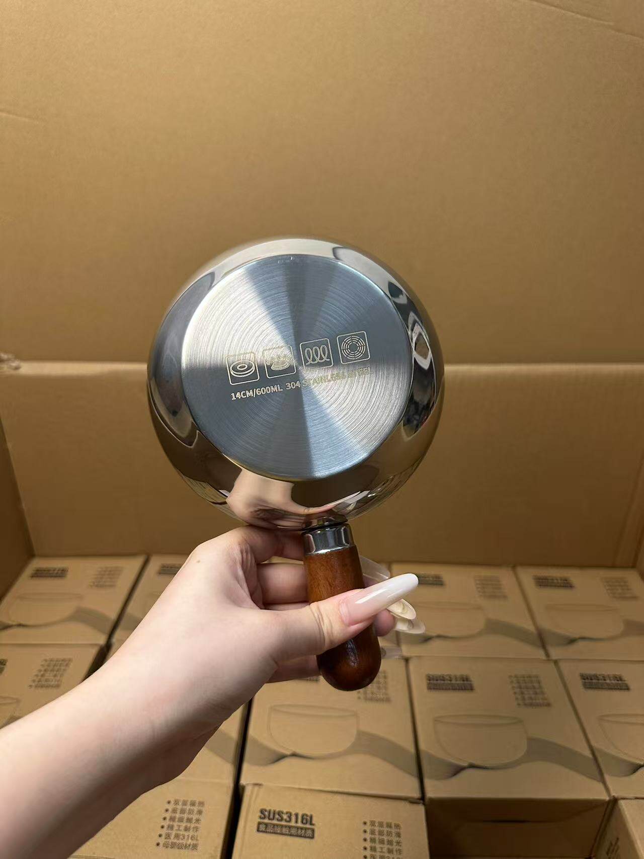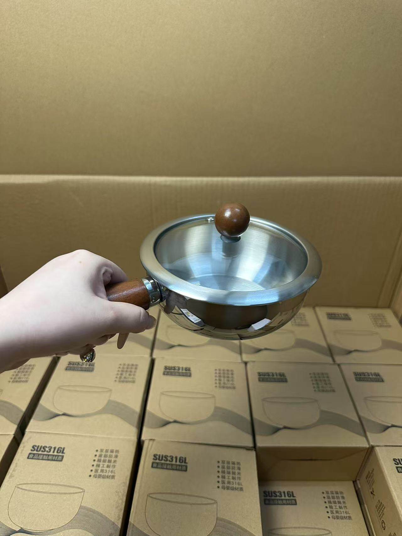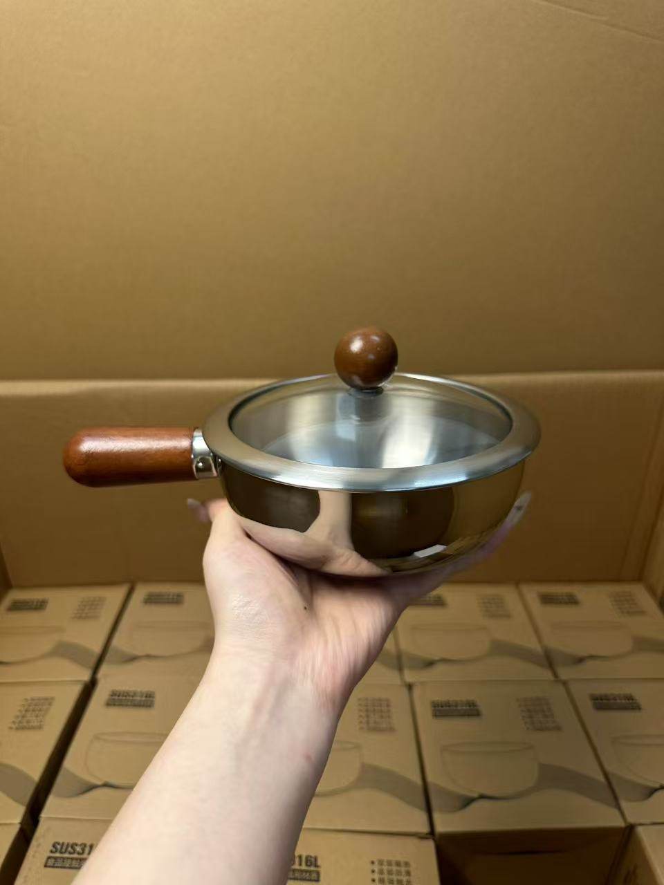 304不锈钢胡桃木小煎锅煎煮一体无涂层不粘一人小锅小吃锅小胖锅