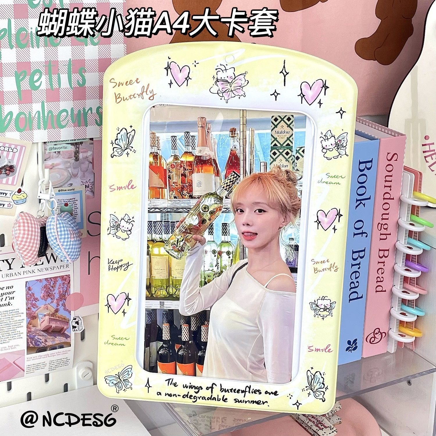 蝴蝶小猫A4超大PVC卡套追星爱豆演唱会巨无霸大卡收纳展示挂件ins