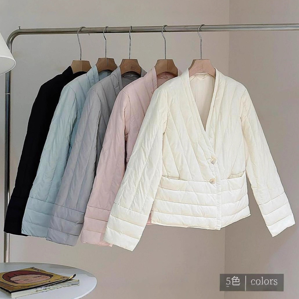 跨境TikTok白鸭绒羽绒服女士短款轻薄内胆韩版保暖V领休闲夹克外