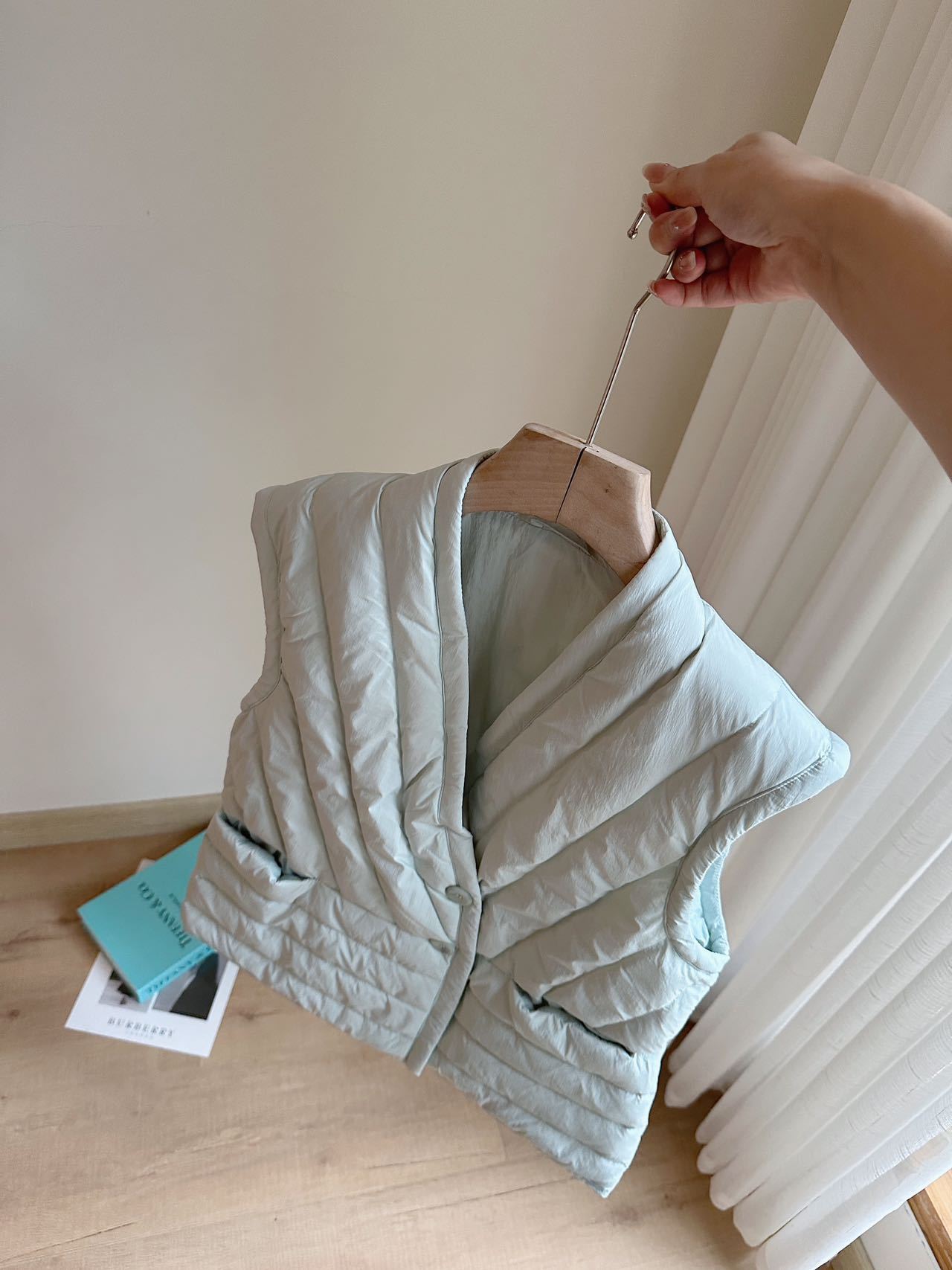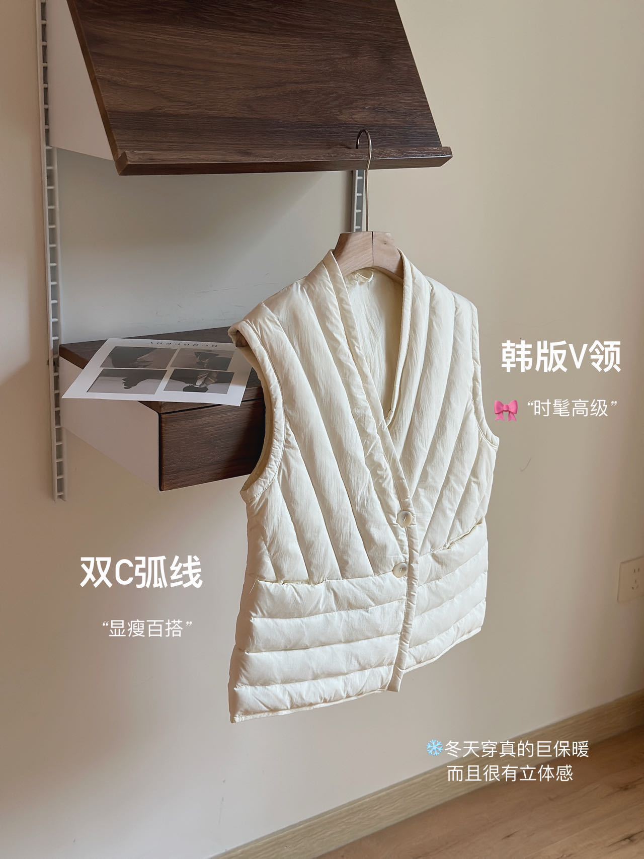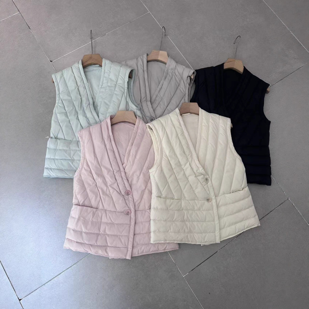 跨境TikTok秋款内胆V领小马甲内胆修身显瘦居家短羽绒服背心轻薄