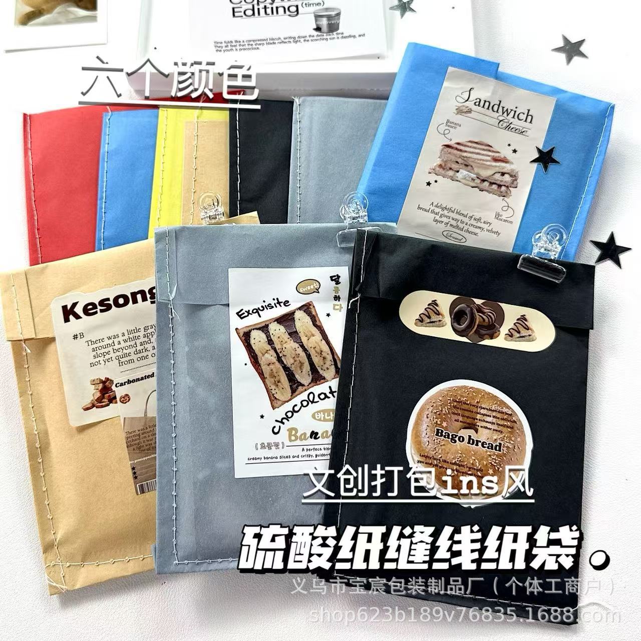 硫酸纸缝线纸袋ins出卡谷子文创打包礼品袋diy高颜值包装袋平口袋