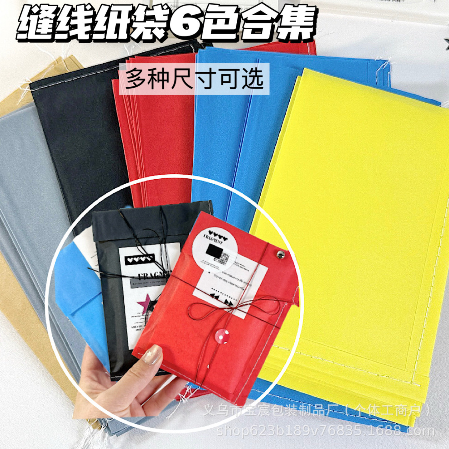 高饱和纯色缝线纸袋合集ins风文创出卡打包diy高颜值礼品包装袋