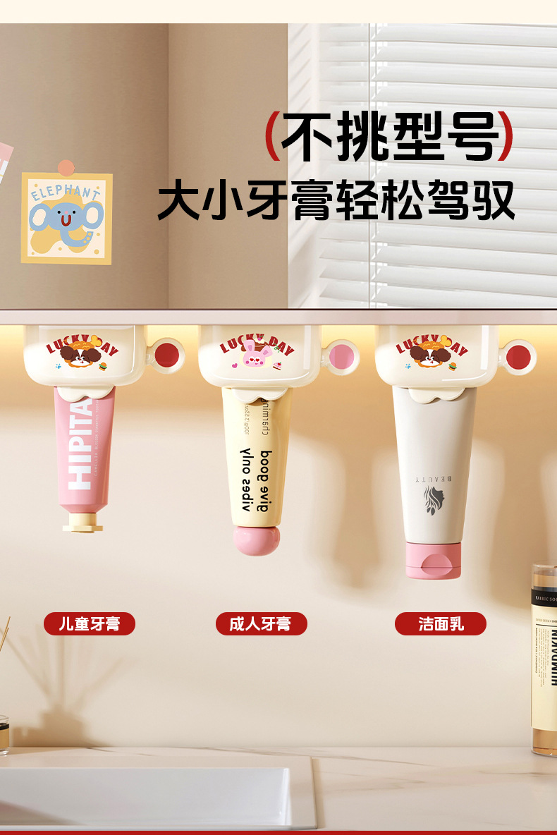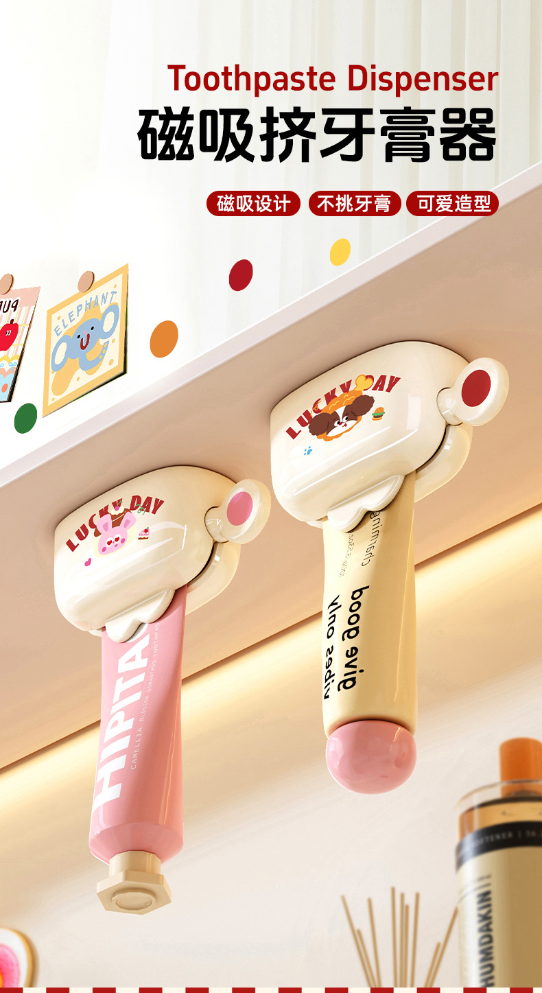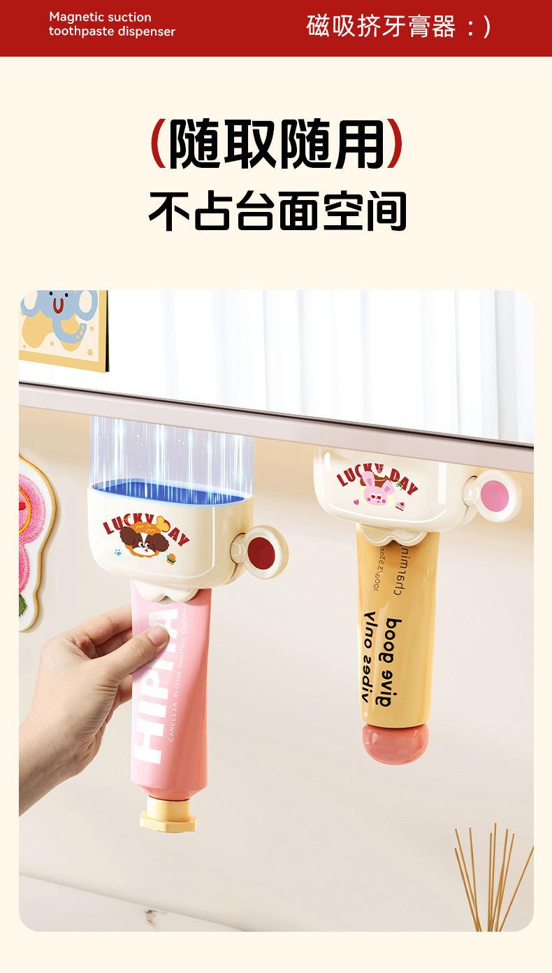 磁吸挤牙膏器家用卡通多巴胺护手霜洗面奶夹壁挂卫生间挤牙膏神器
