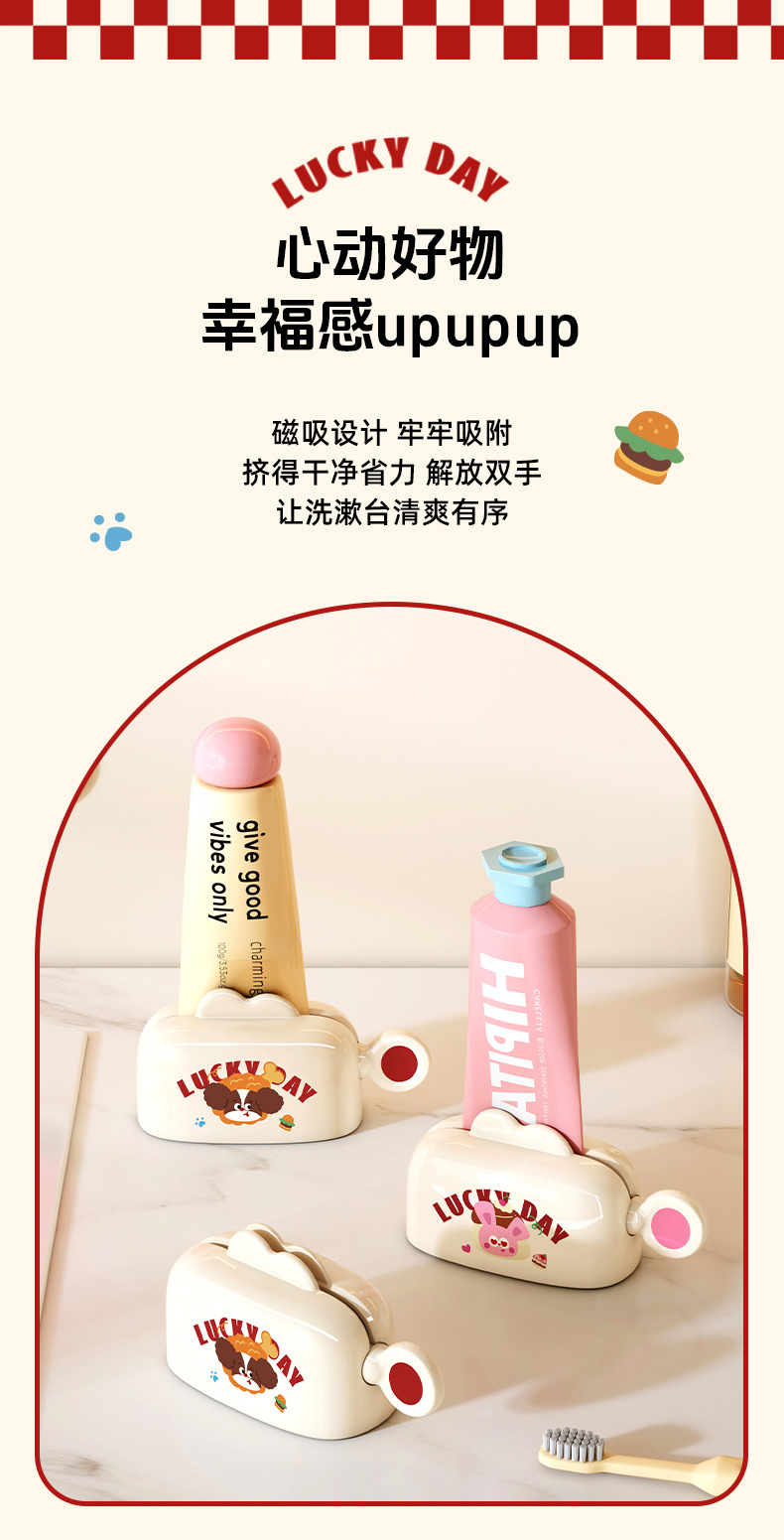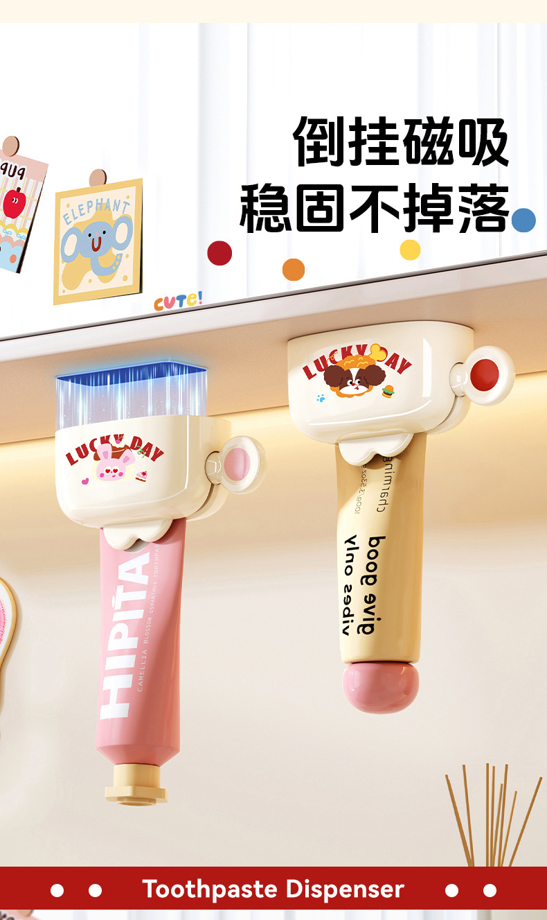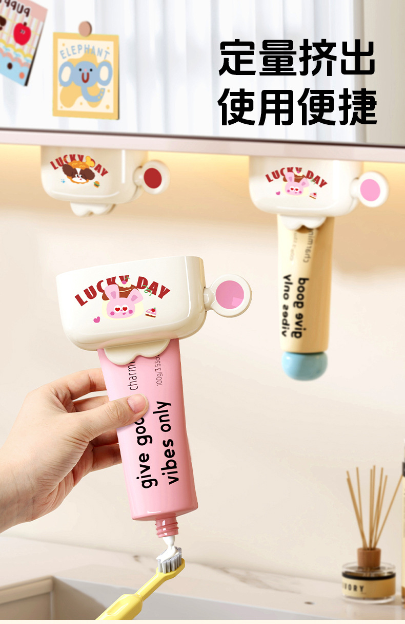 磁吸挤牙膏器家用卡通多巴胺护手霜洗面奶夹壁挂卫生间挤牙膏神器
