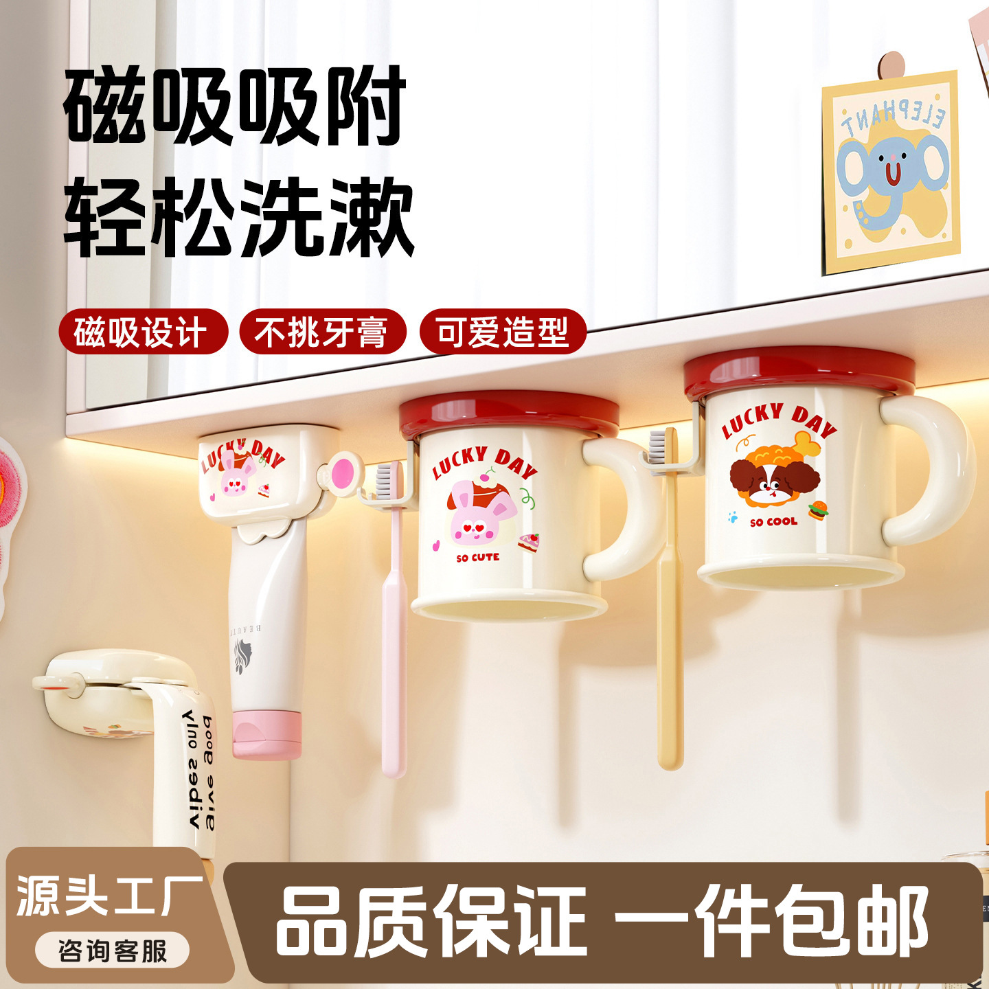 多巴胺磁吸牙刷架镜柜下 倒挂牙刷牙杯置物架漱口杯挂墙式牙膏架