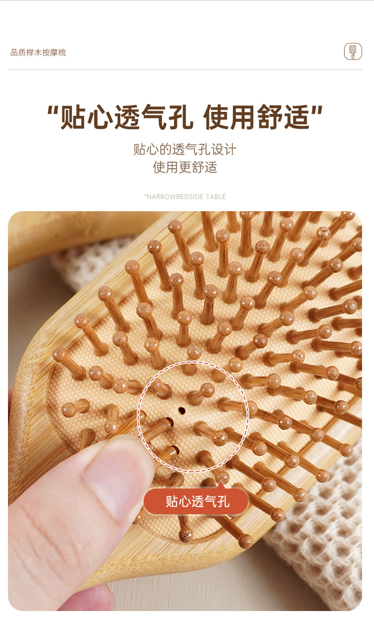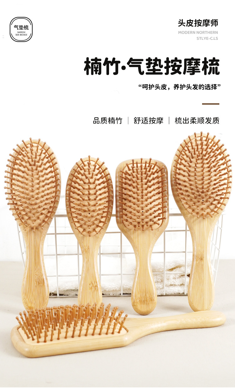 工厂现货批发楠竹气垫按摩梳家用头部按摩梳便携顺发造型气囊梳子