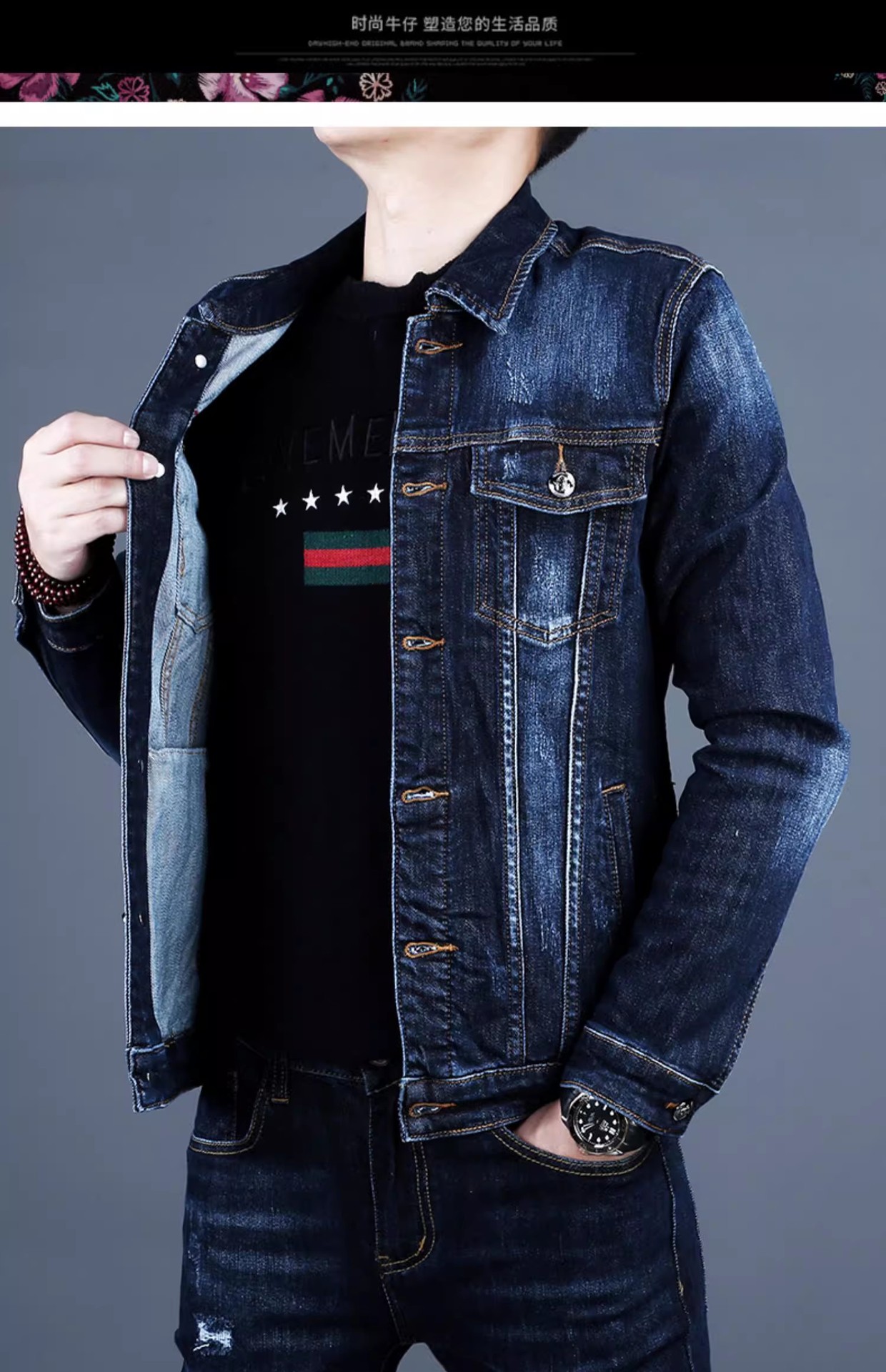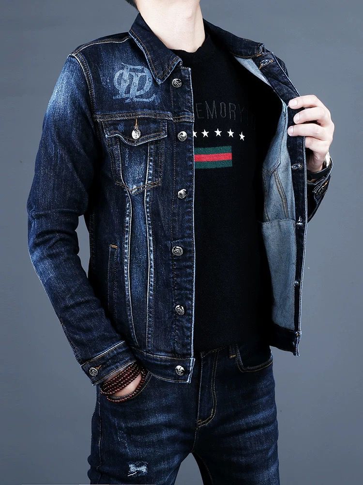 春秋タイプのデニムコートの男性ファッションブランドの個性刺繍の流れがゆったりしています。