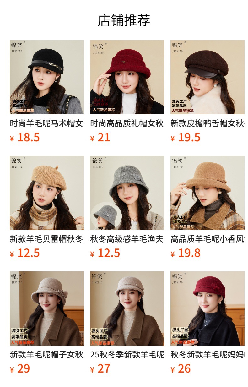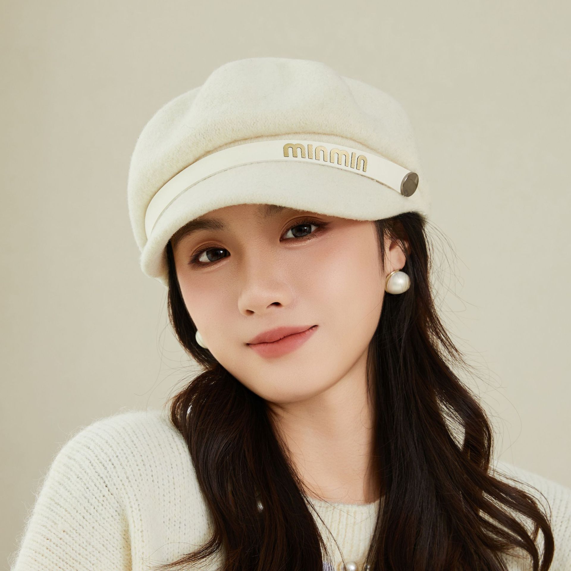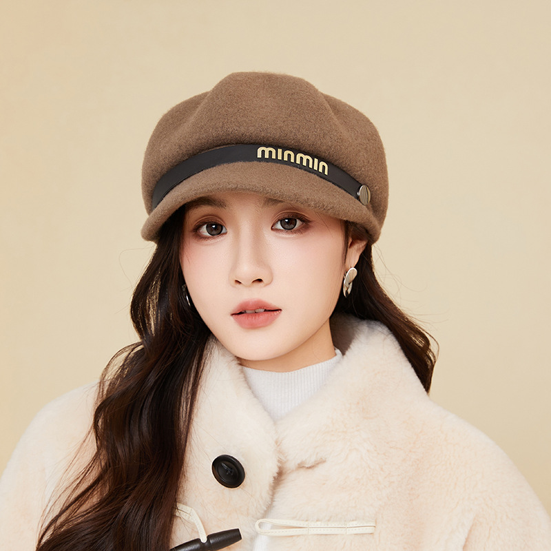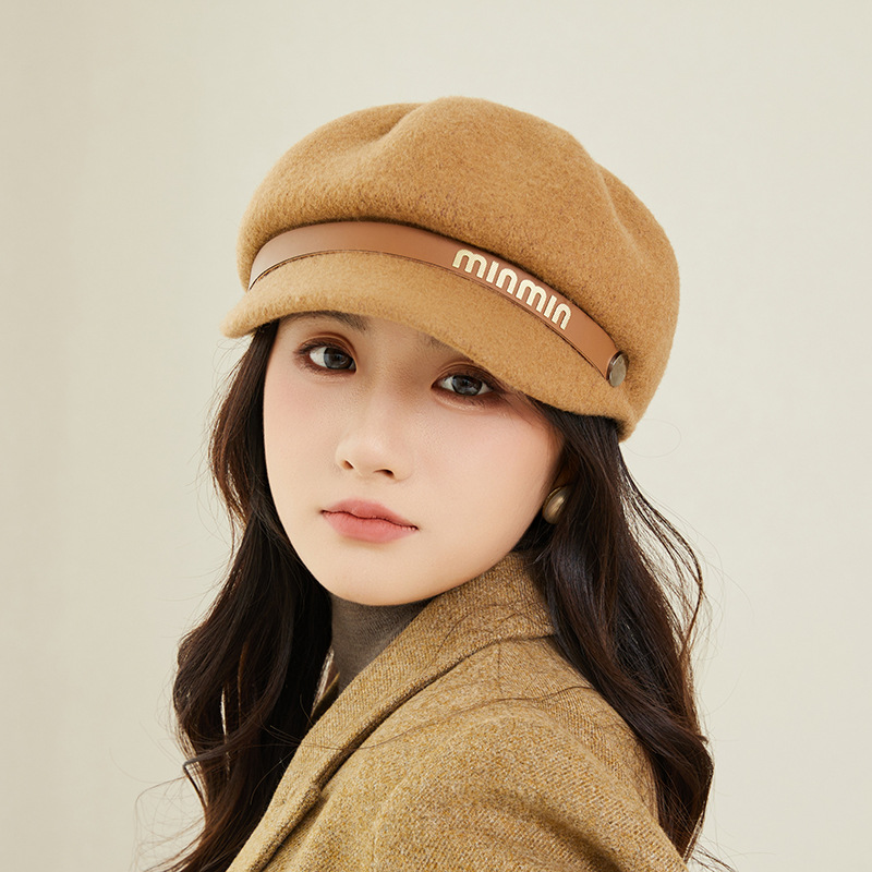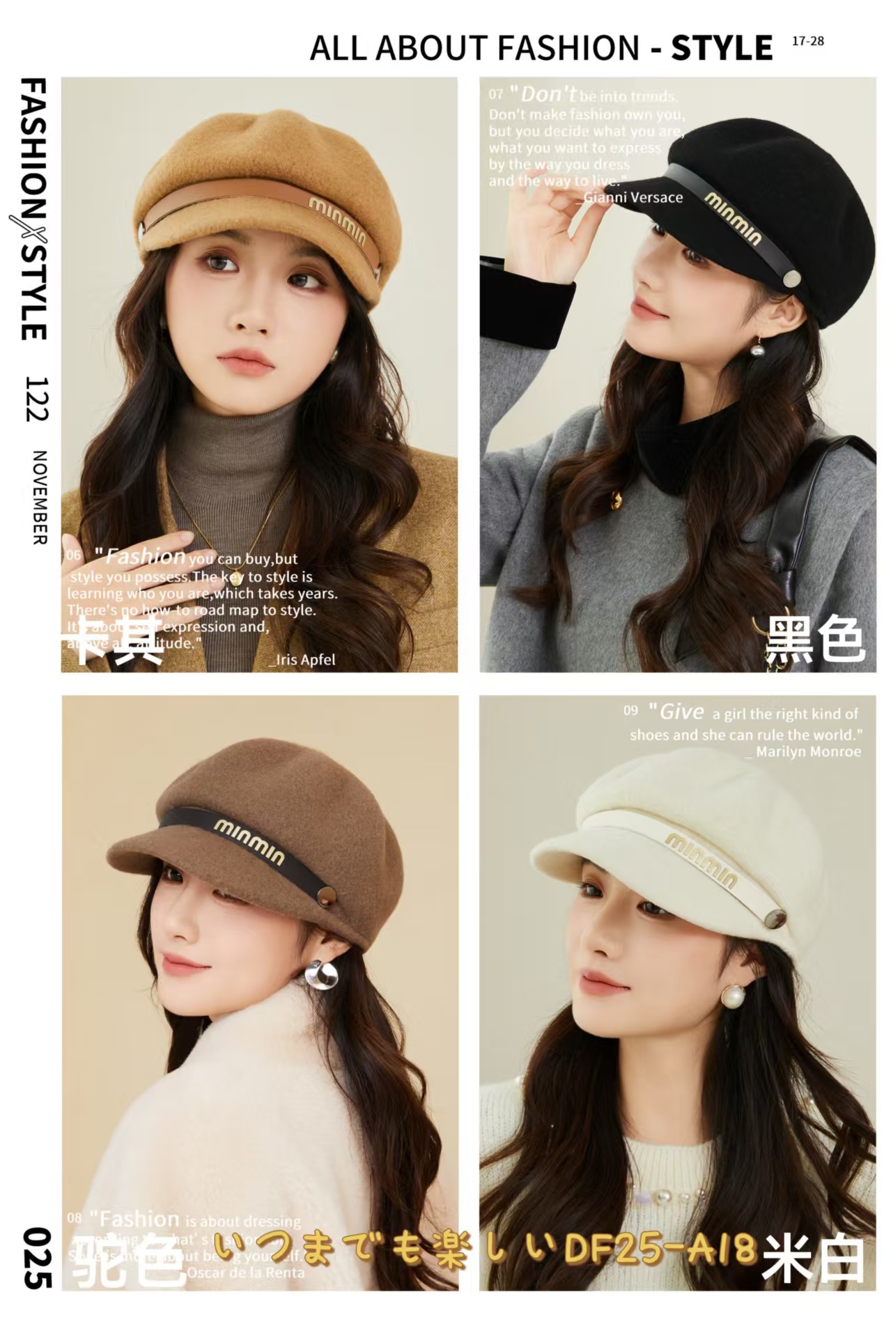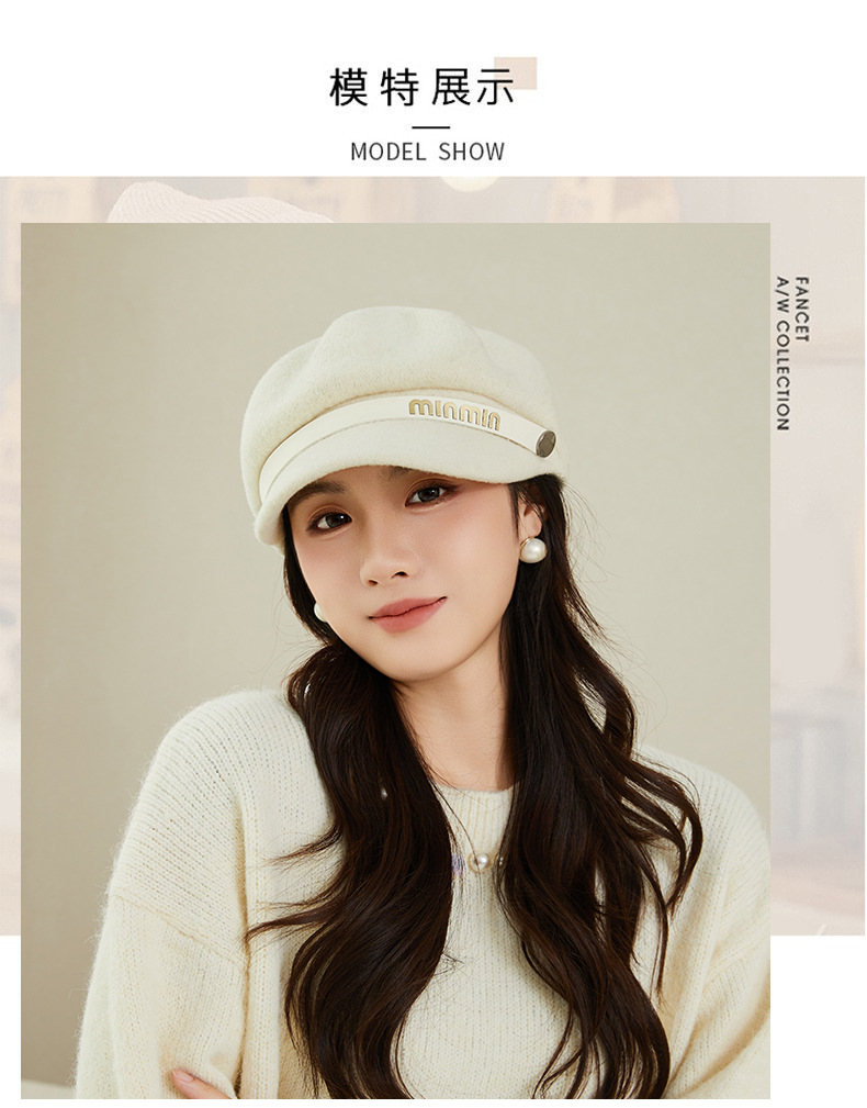 25新款鸭舌帽秋冬女羊毛保暖爆款八角帽日系复古保暖报童帽画家帽