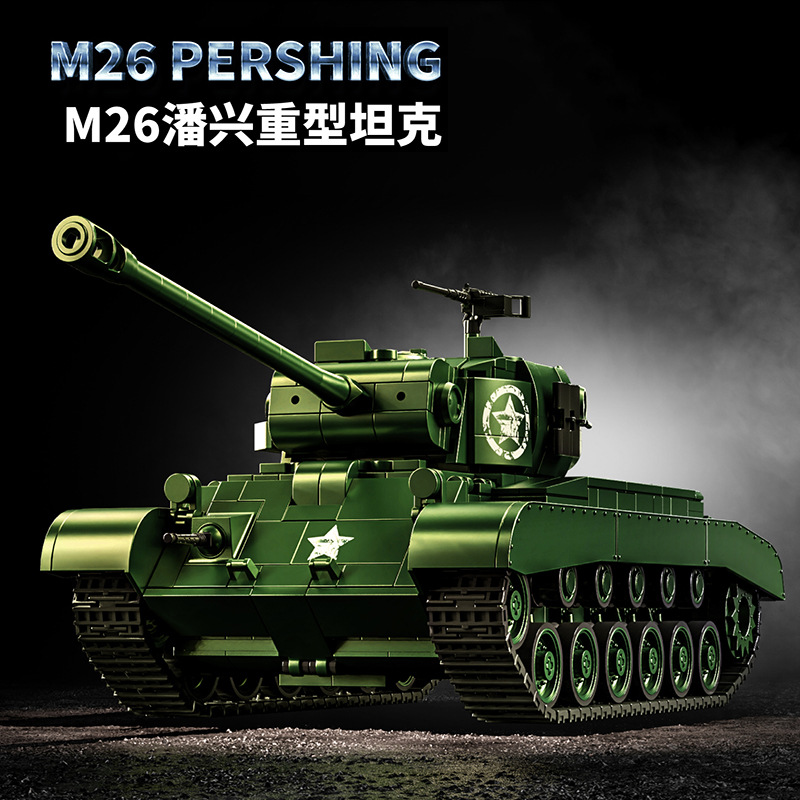 12GO97011第二次世界大戦アメリカm 26潘興重戦車高難度の組み合わせで益智積み木クロスボーダー玩具を組み立てる。