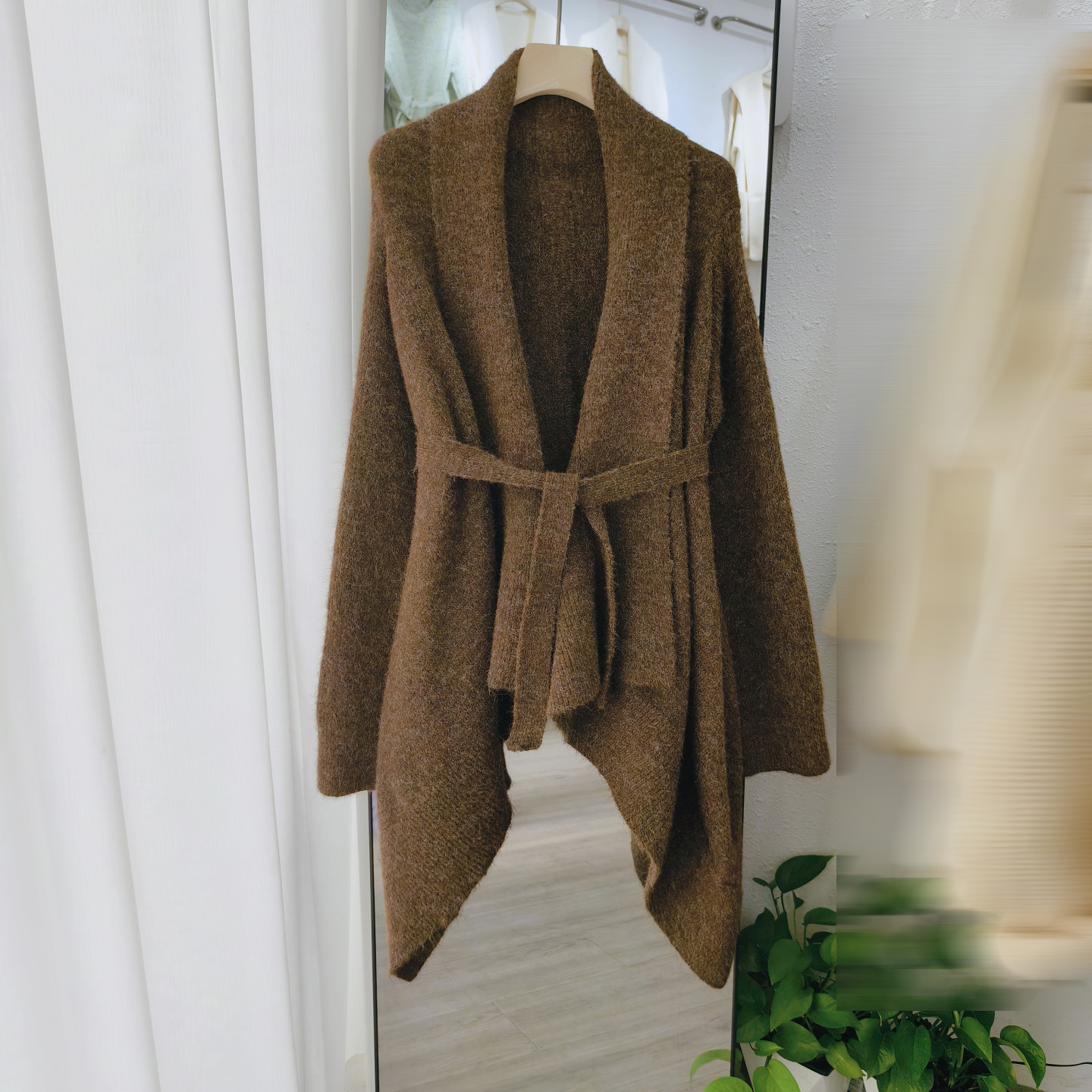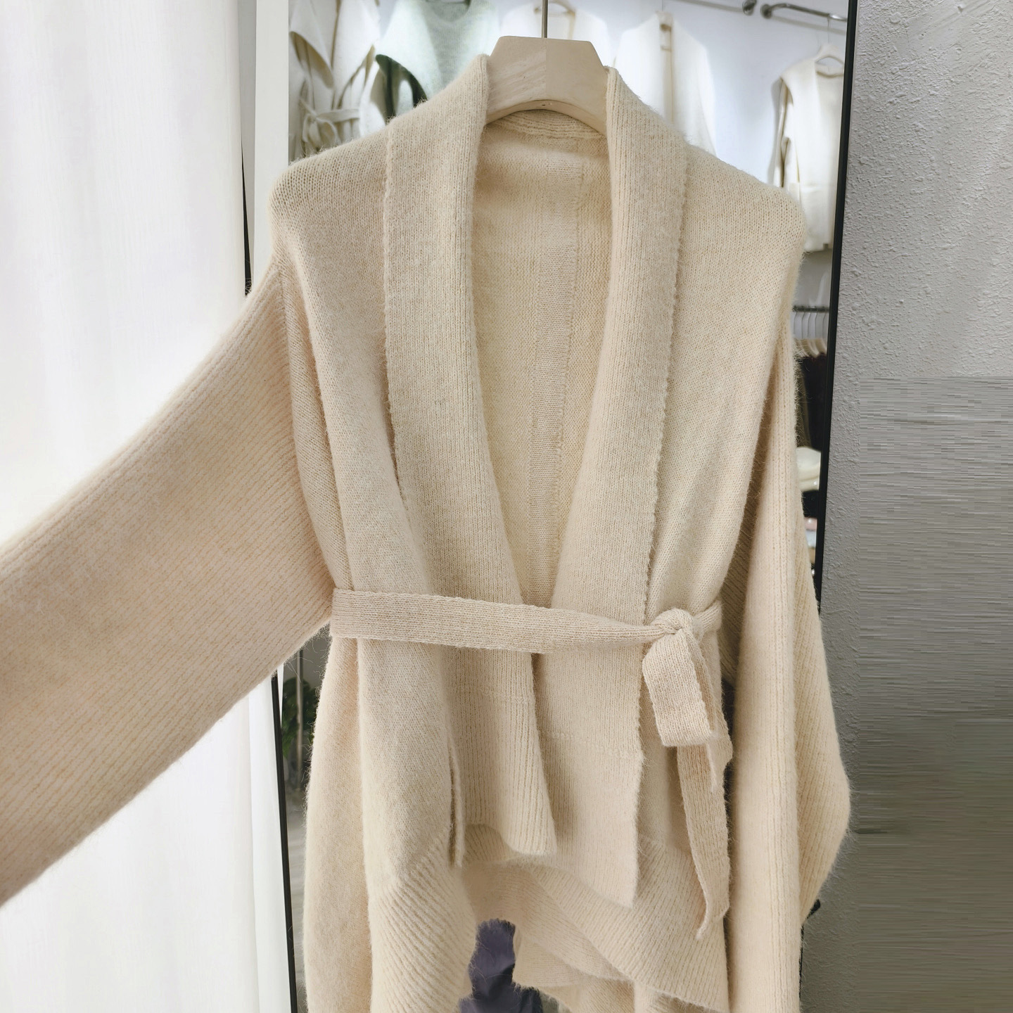 バット型セーターメイラードカーディガンジャケット女性の秋の新しい怠惰なスタイルウエストストラップセータートップ