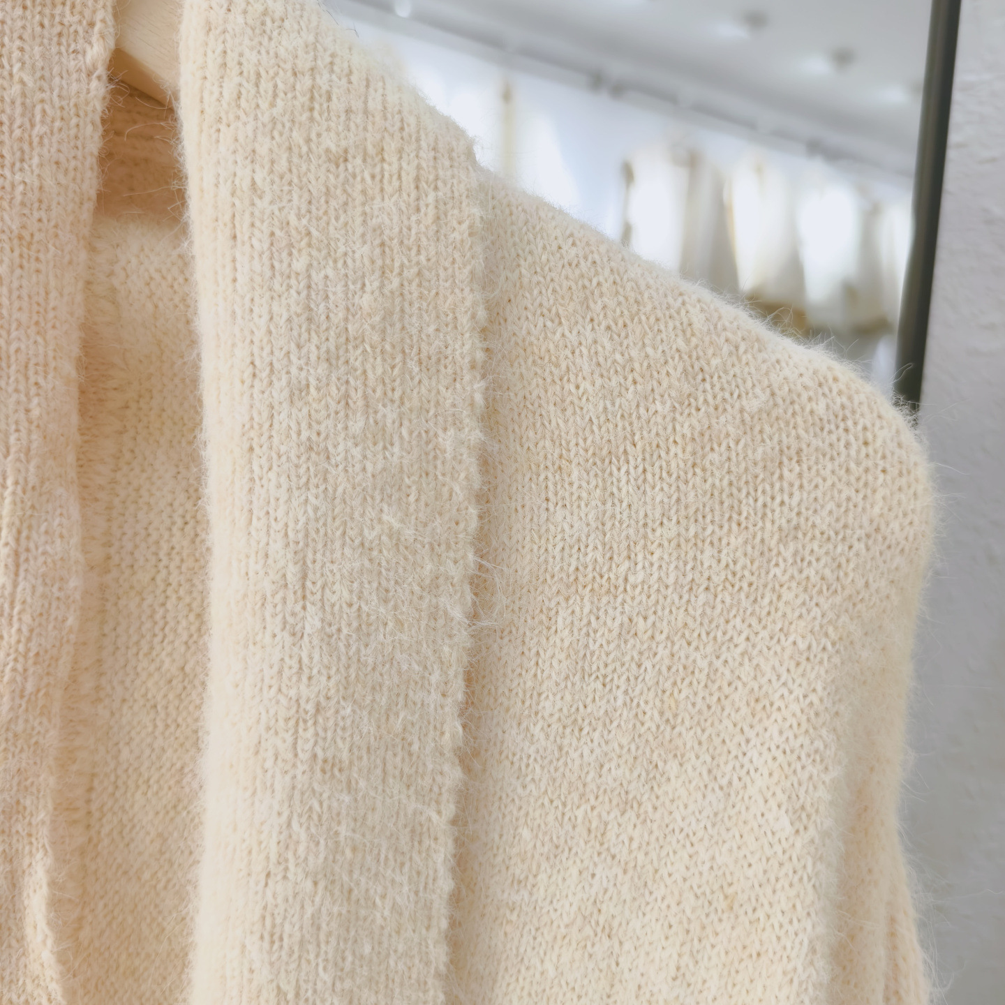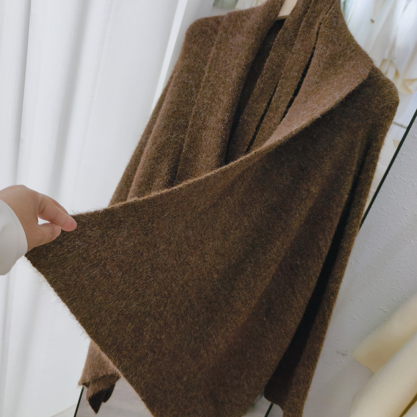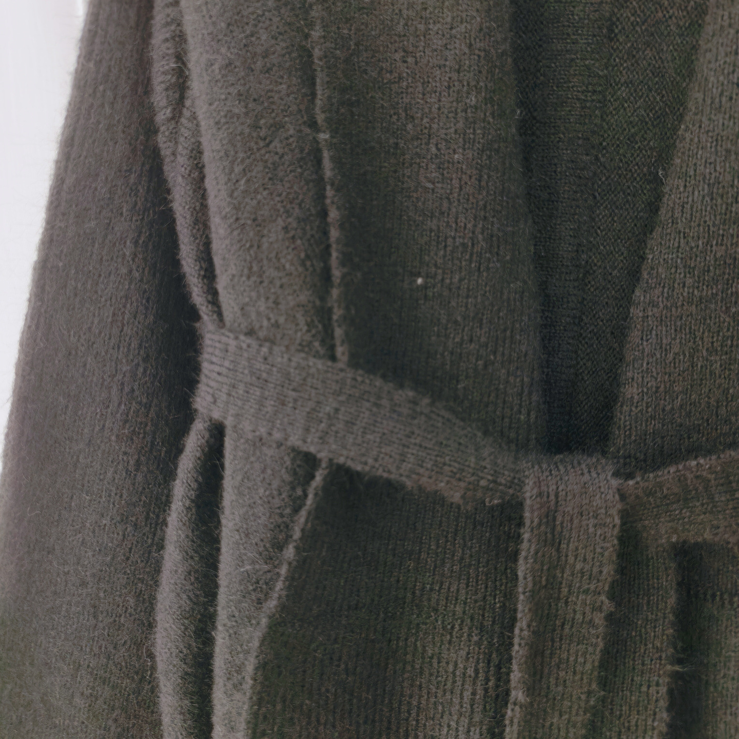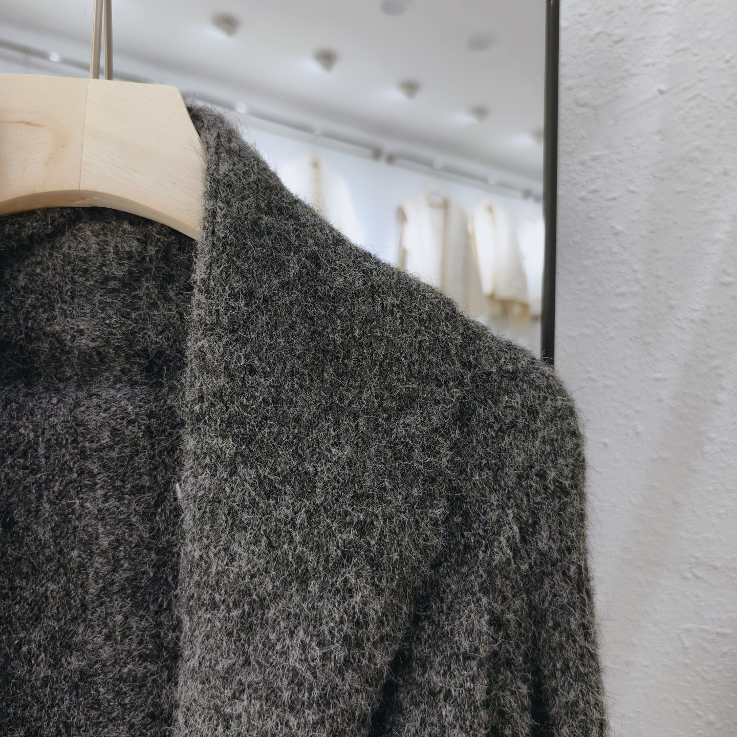 リラックスした着こなし、ゆったりとしたニットカーディガン、レディース秋冬スカーフカラー、高級アウター、ミドル丈セータージャケット、厚手