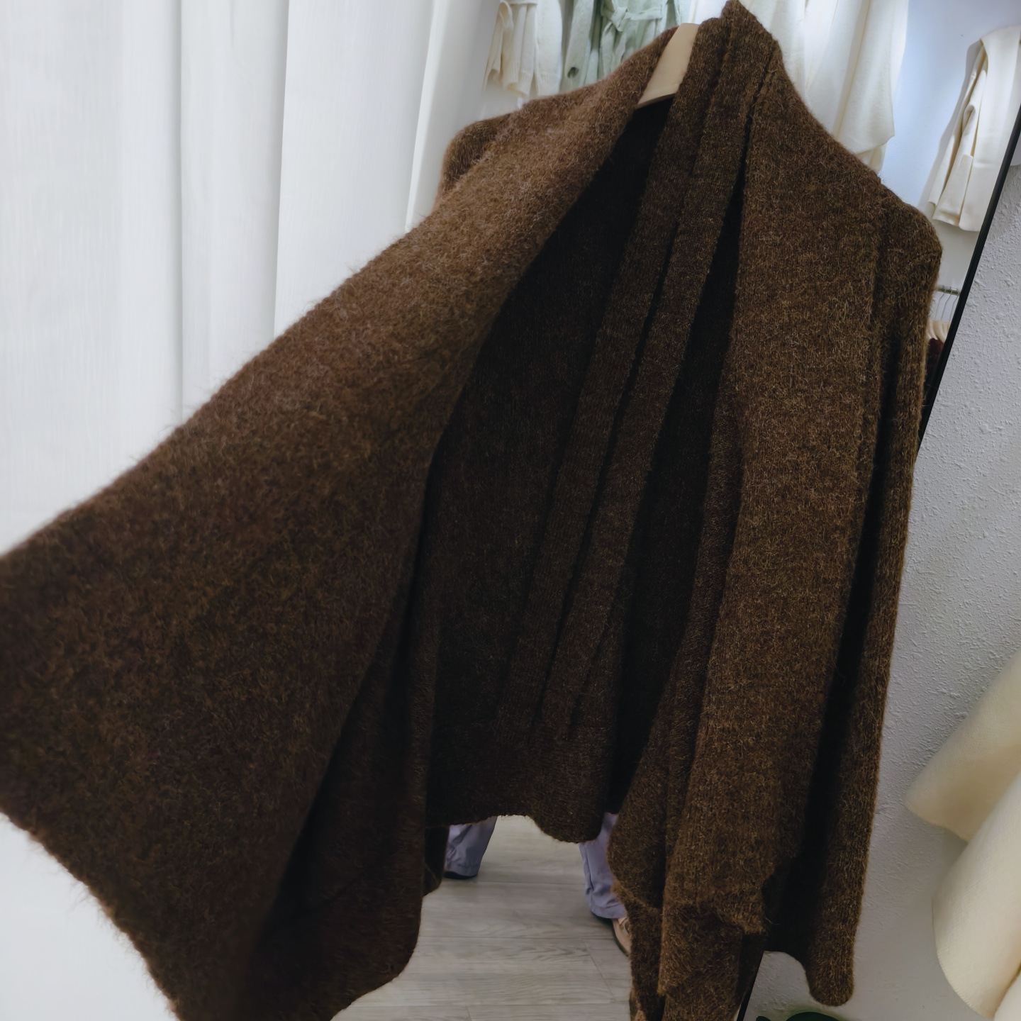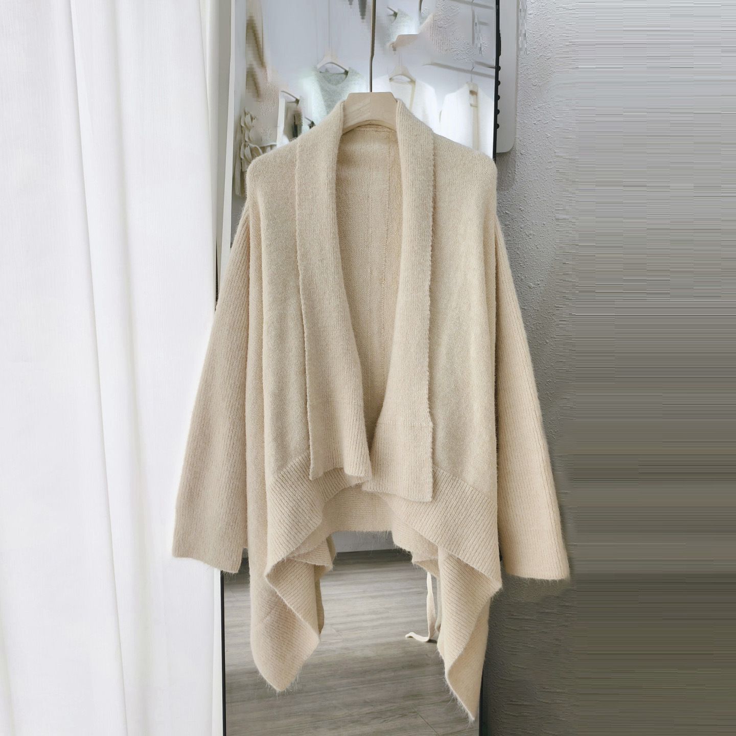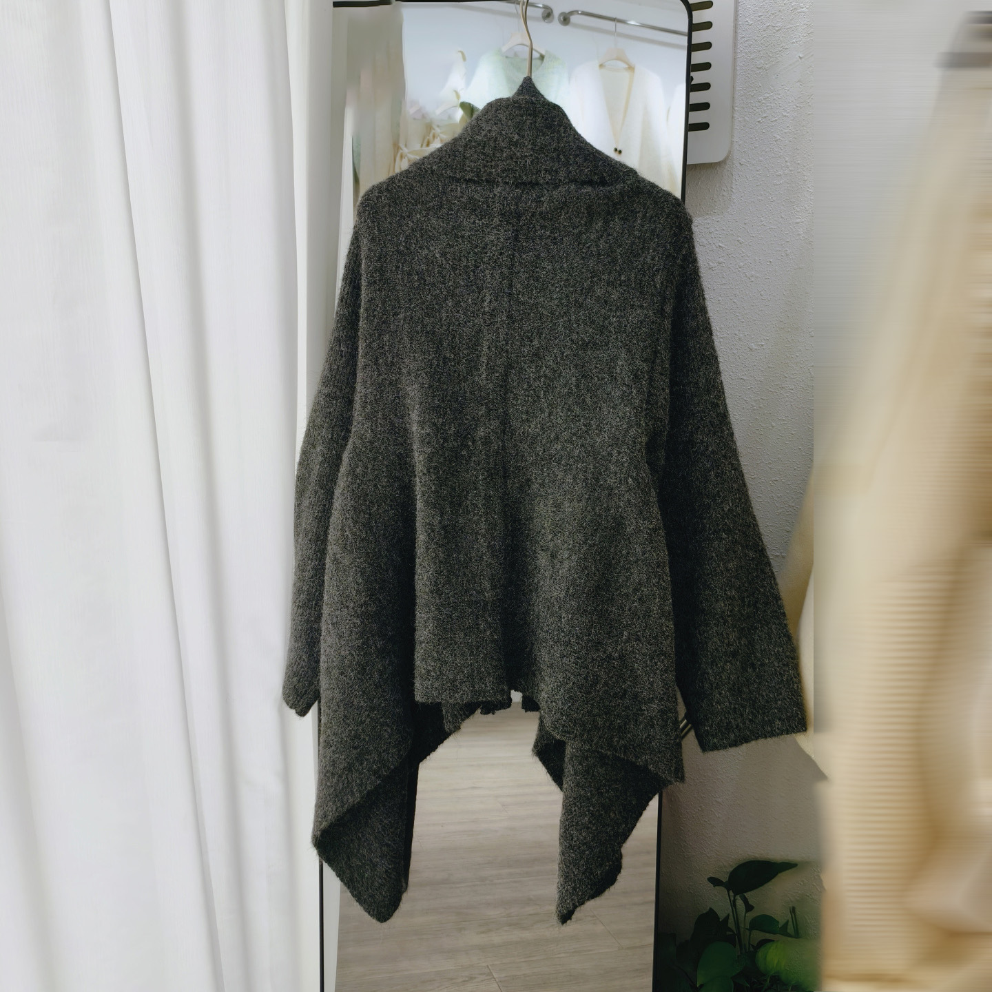 欧货秋冬设计感针织衫女外套开衫上衣不规则宽松慵懒外搭披肩毛衣