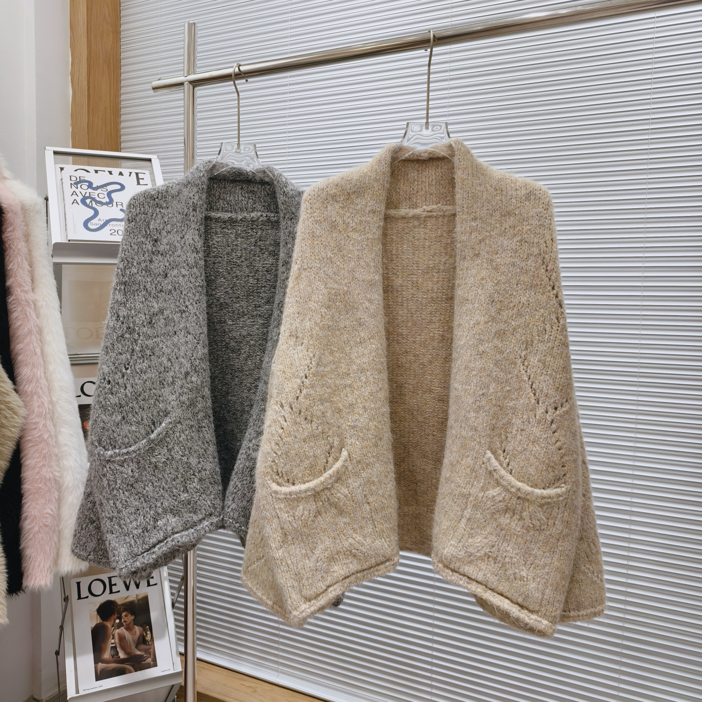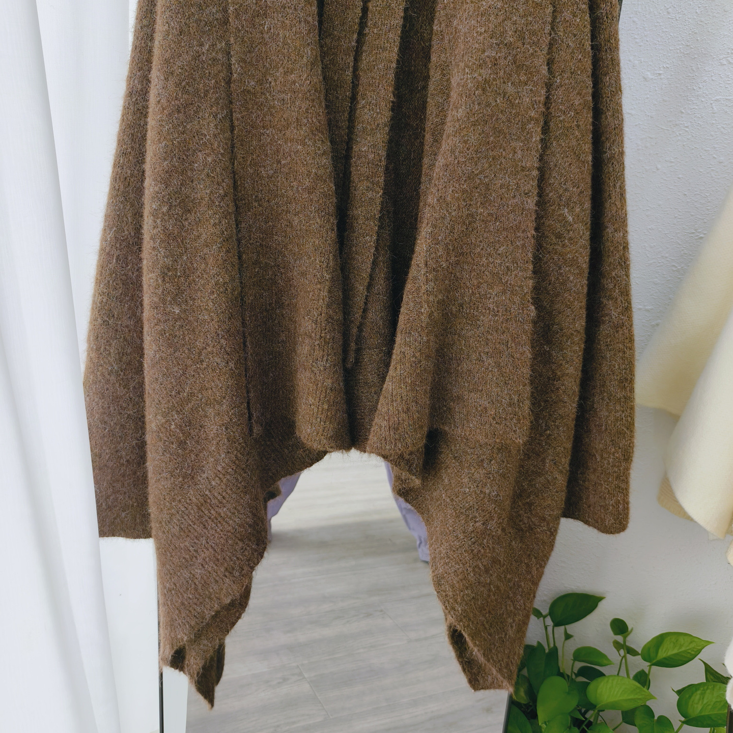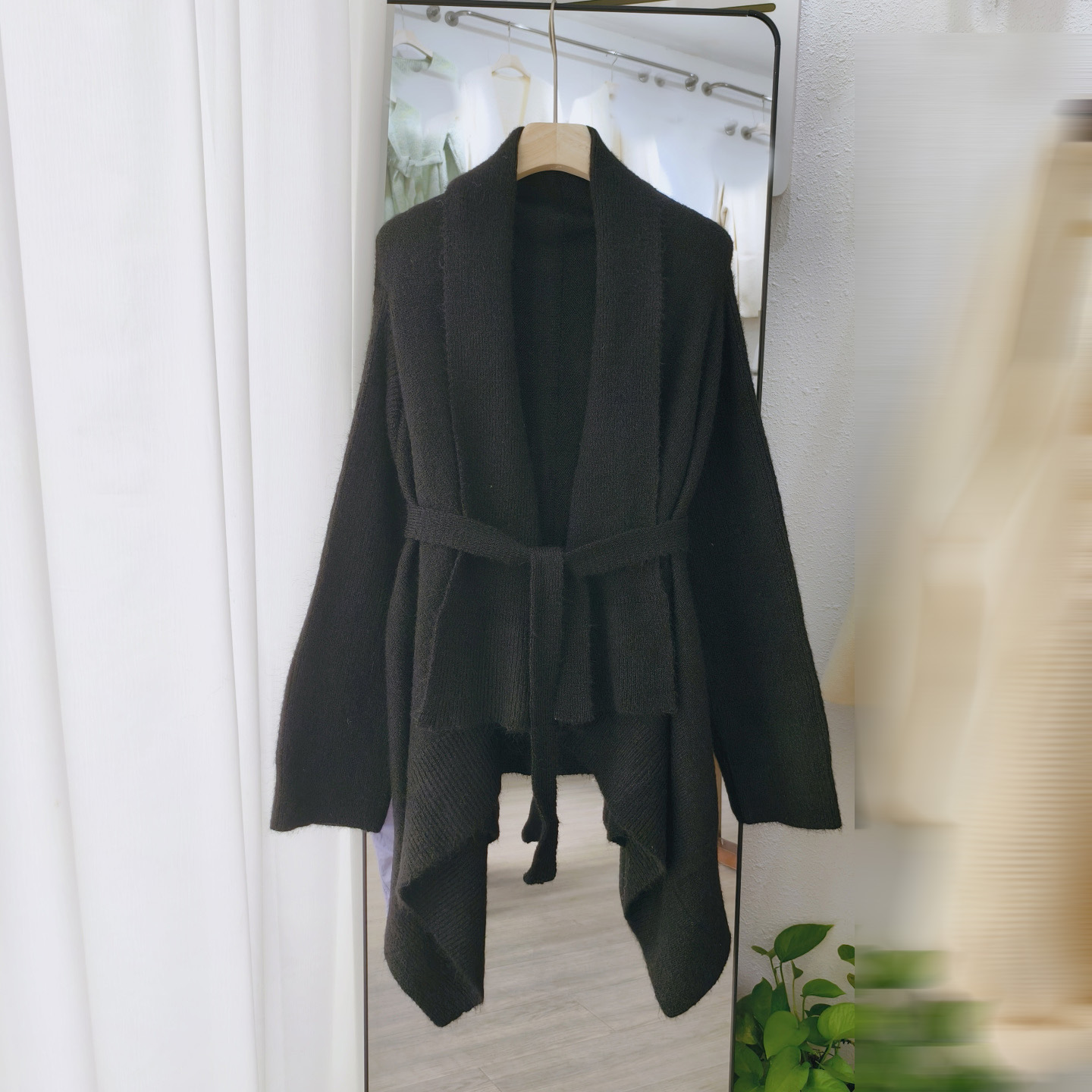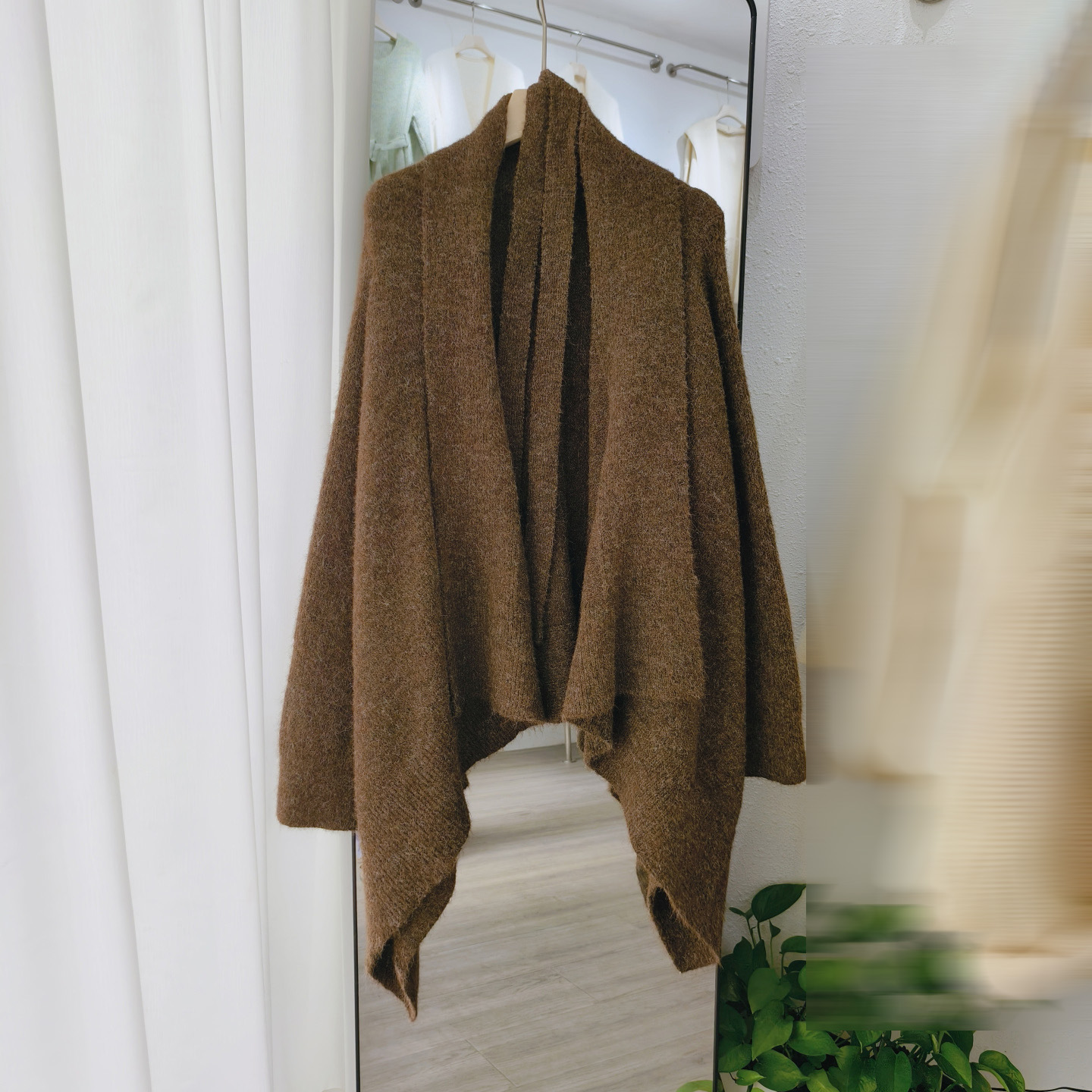 欧货秋冬设计感针织衫女外套开衫上衣不规则宽松慵懒外搭披肩毛衣