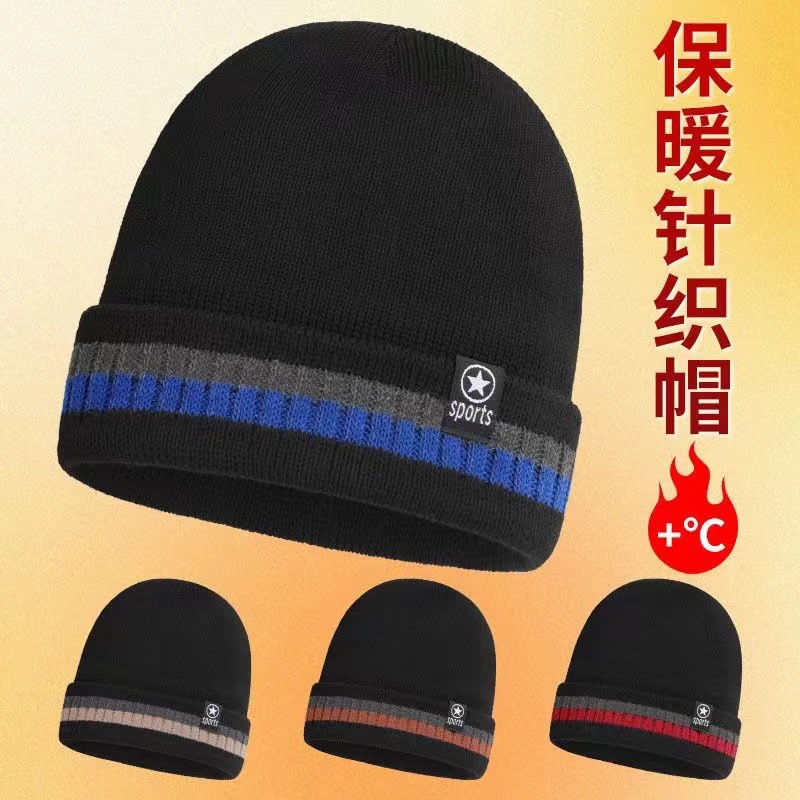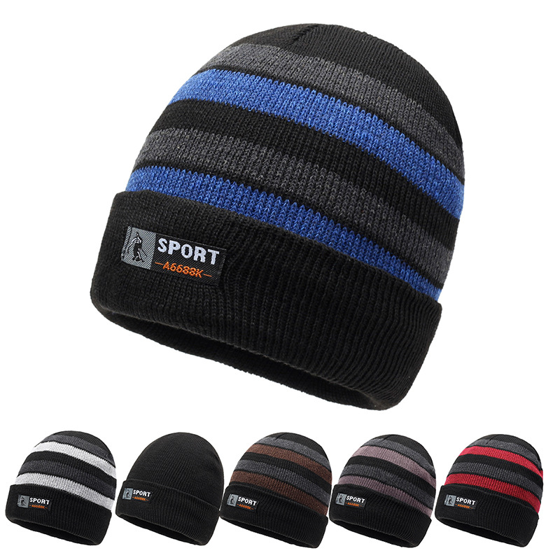 冬の新型帽子冷帽保温冬ニット帽毛糸帽男性屋外帽子縞冬帽