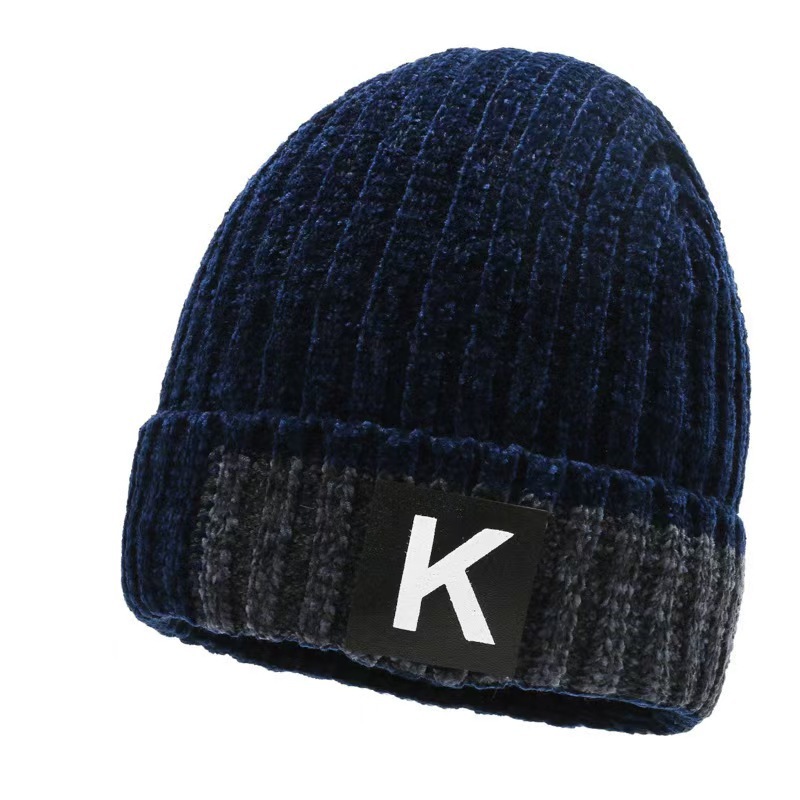 男加绒加厚保暖护耳冷帽冬季新款简约时尚百搭字母雪尼尔针织帽子