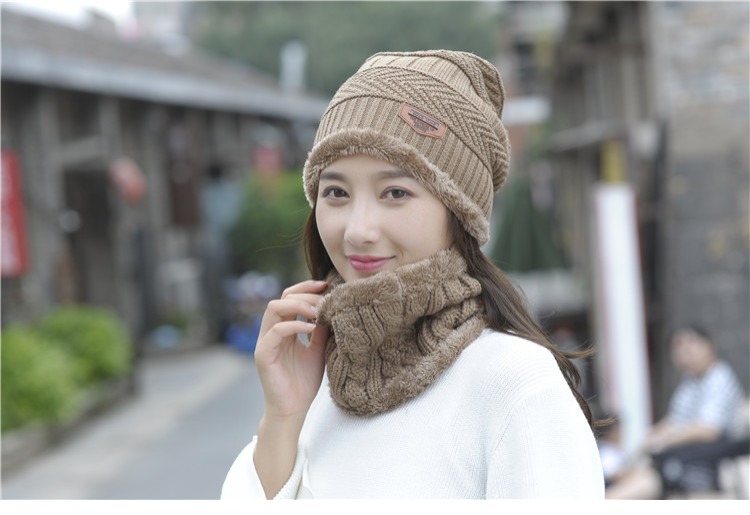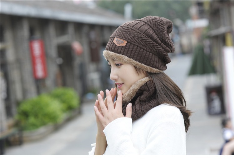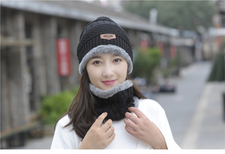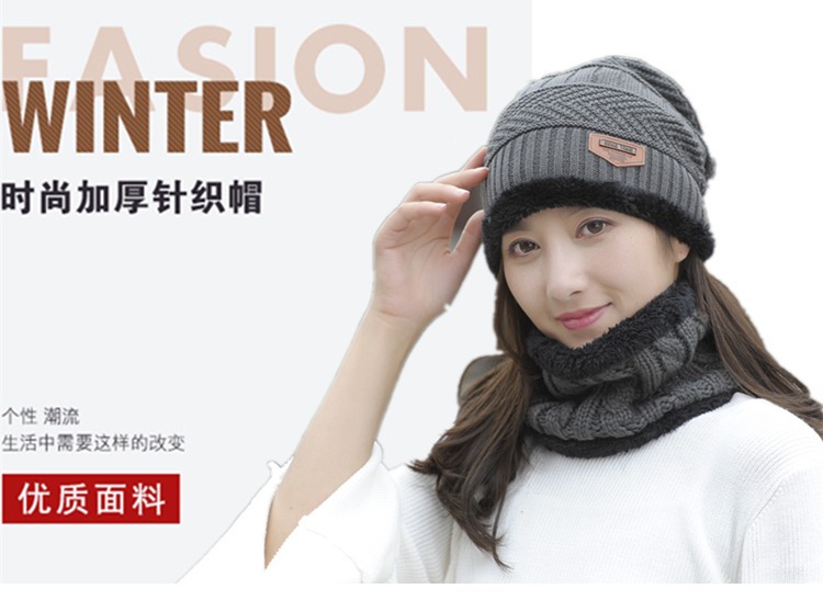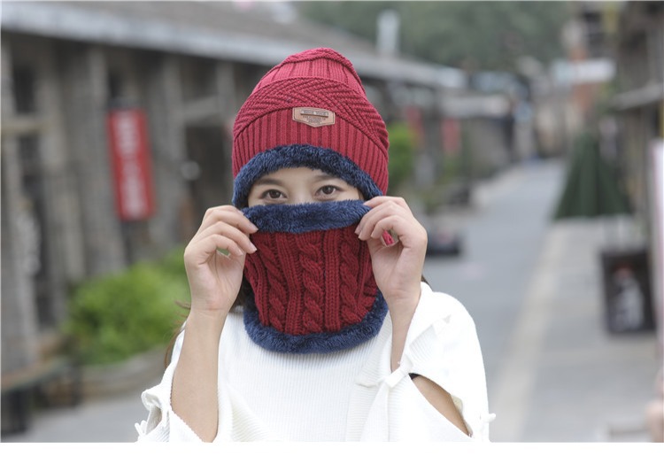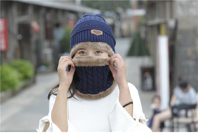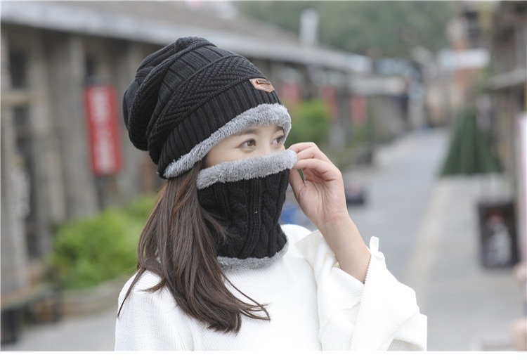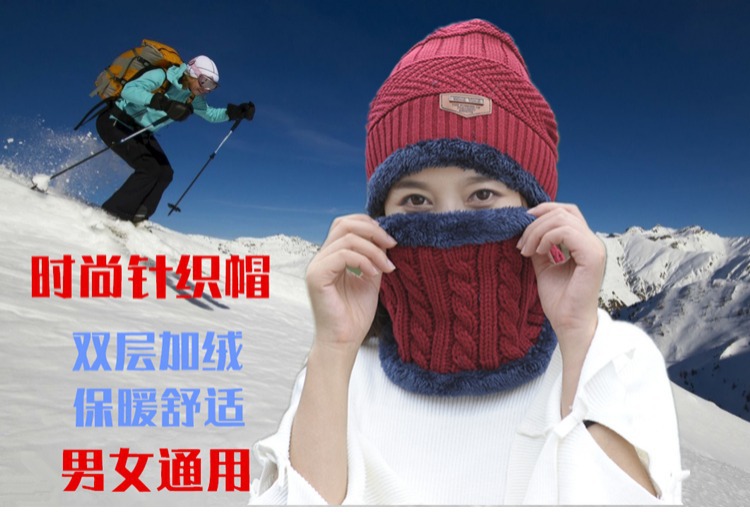 冬天帽子套头帽围脖套装加绒加厚毛线帽男韩版秋冬季男女士针织帽