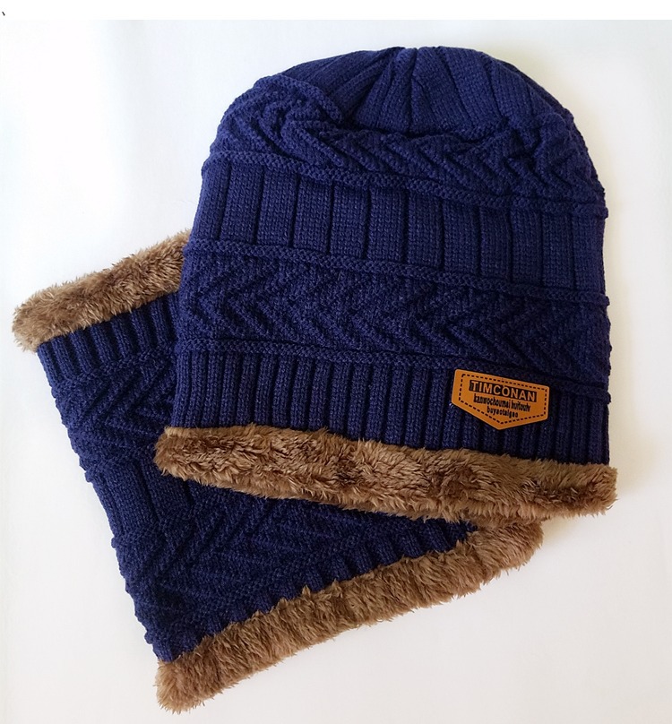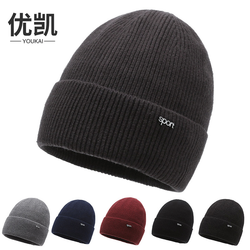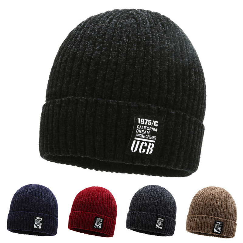 帽子秋冬耳保護保温ベルベット男性帽子厚手ニット毛糸帽子ラベルカバー