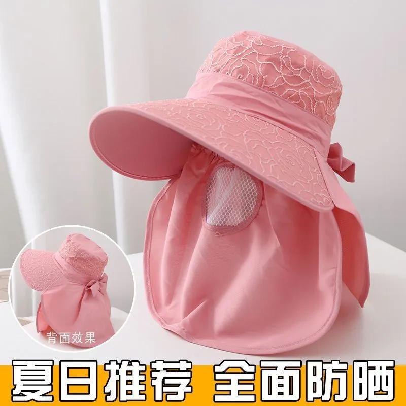 女性用日焼け止め帽子、夏のサイクリング、大きなつばの日よけ、漁師の帽子、ショール、UV保護日よけ帽子