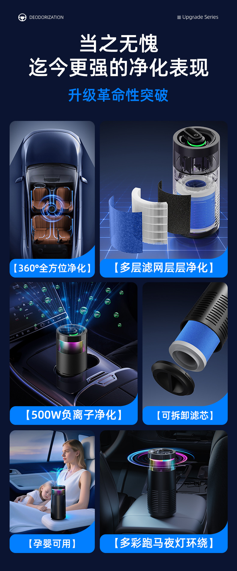 跨境汽车空气净化器车载消除异味家用便携式负离子净化器厂家批发