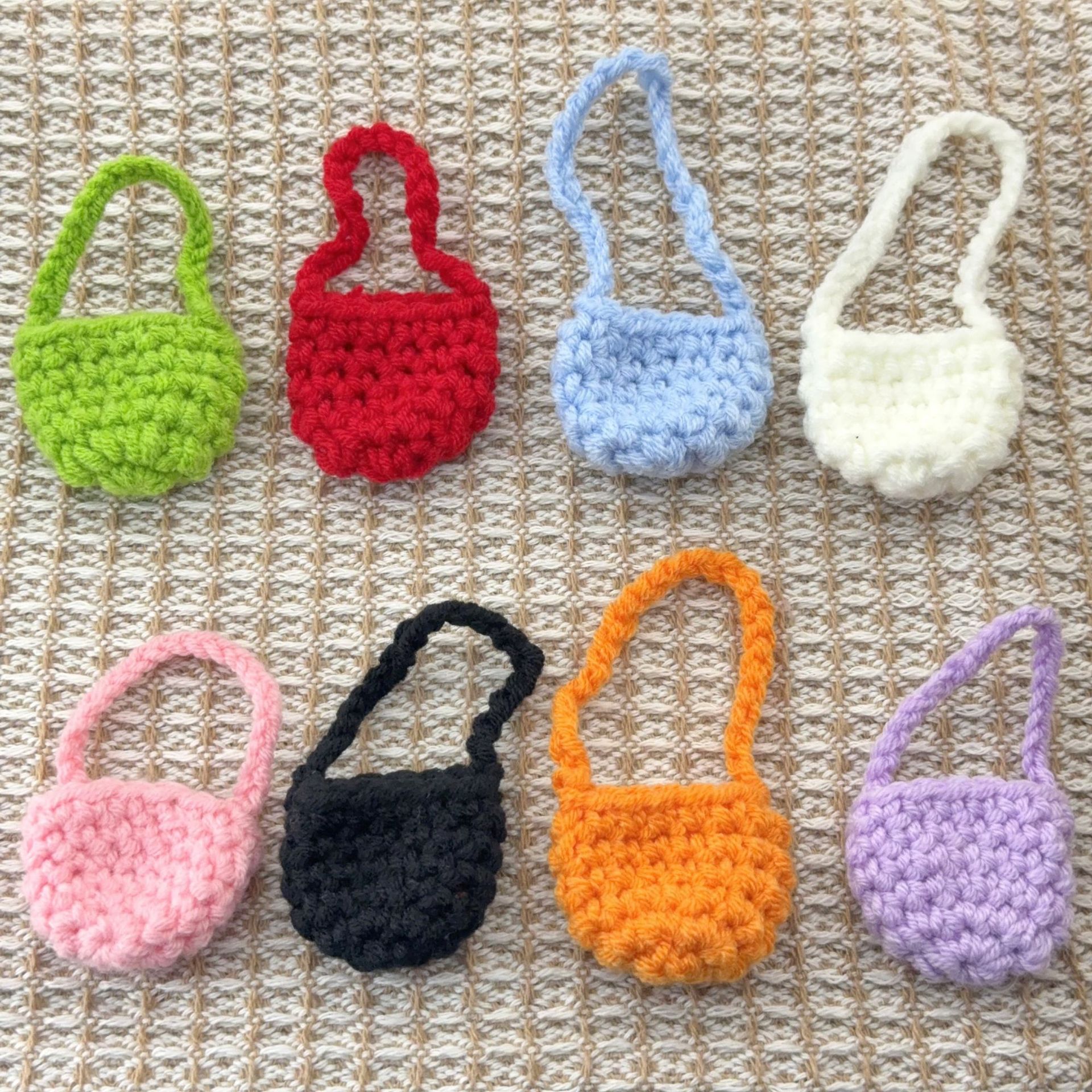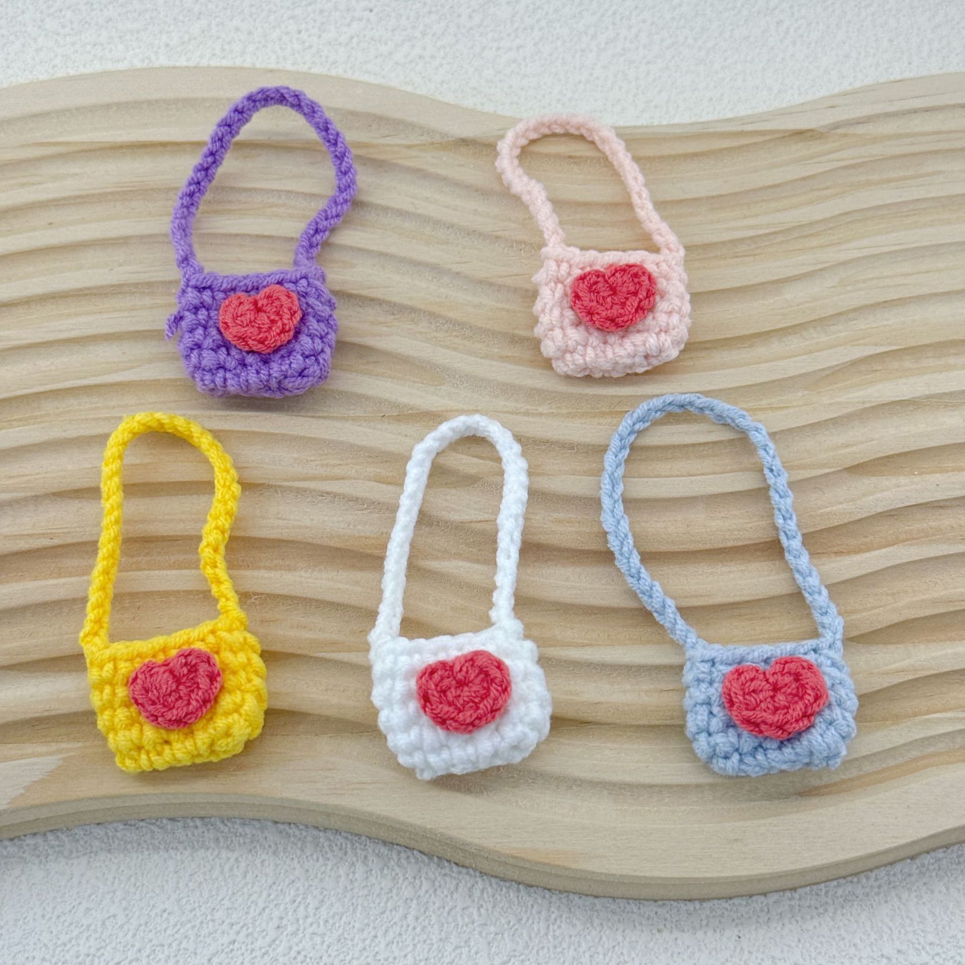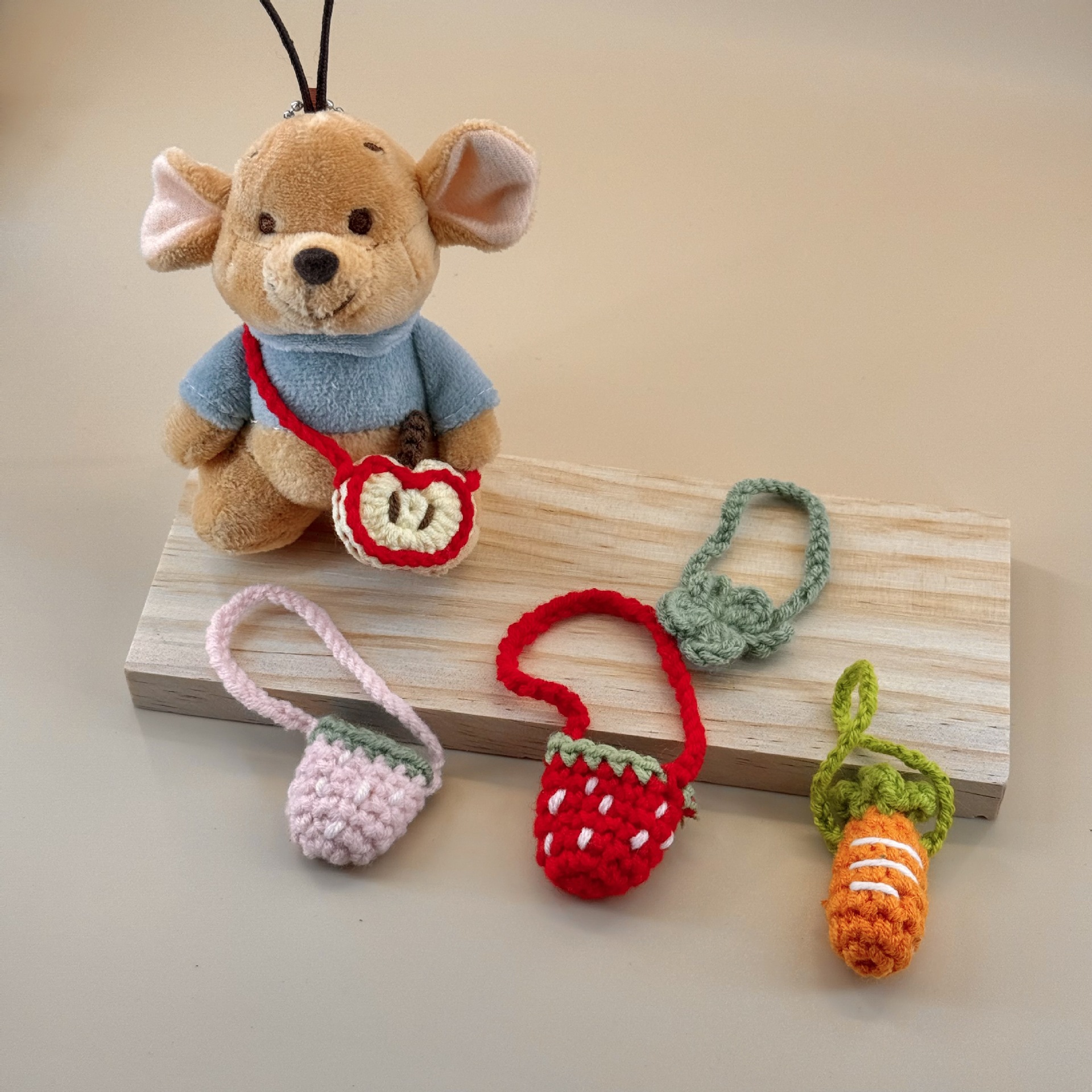 かわいい手作りかぎ針編み毛糸リンゴいちごにんじん四葉草小花ショルダーバッグDIY人形着せ替え部品
