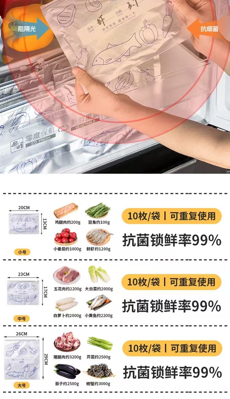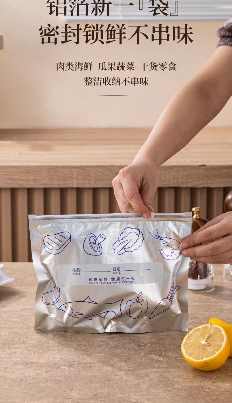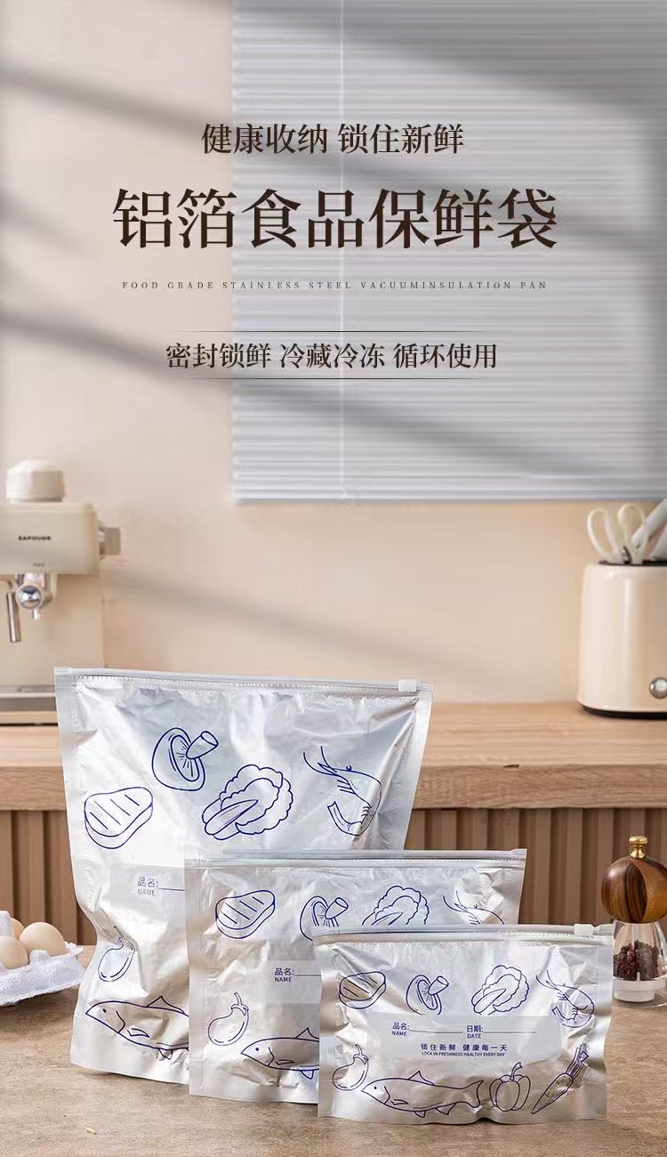 抗菌铝箔保鲜袋冰箱冷冻密封袋自封袋拉链式食品级封口分装袋