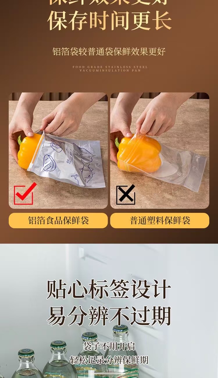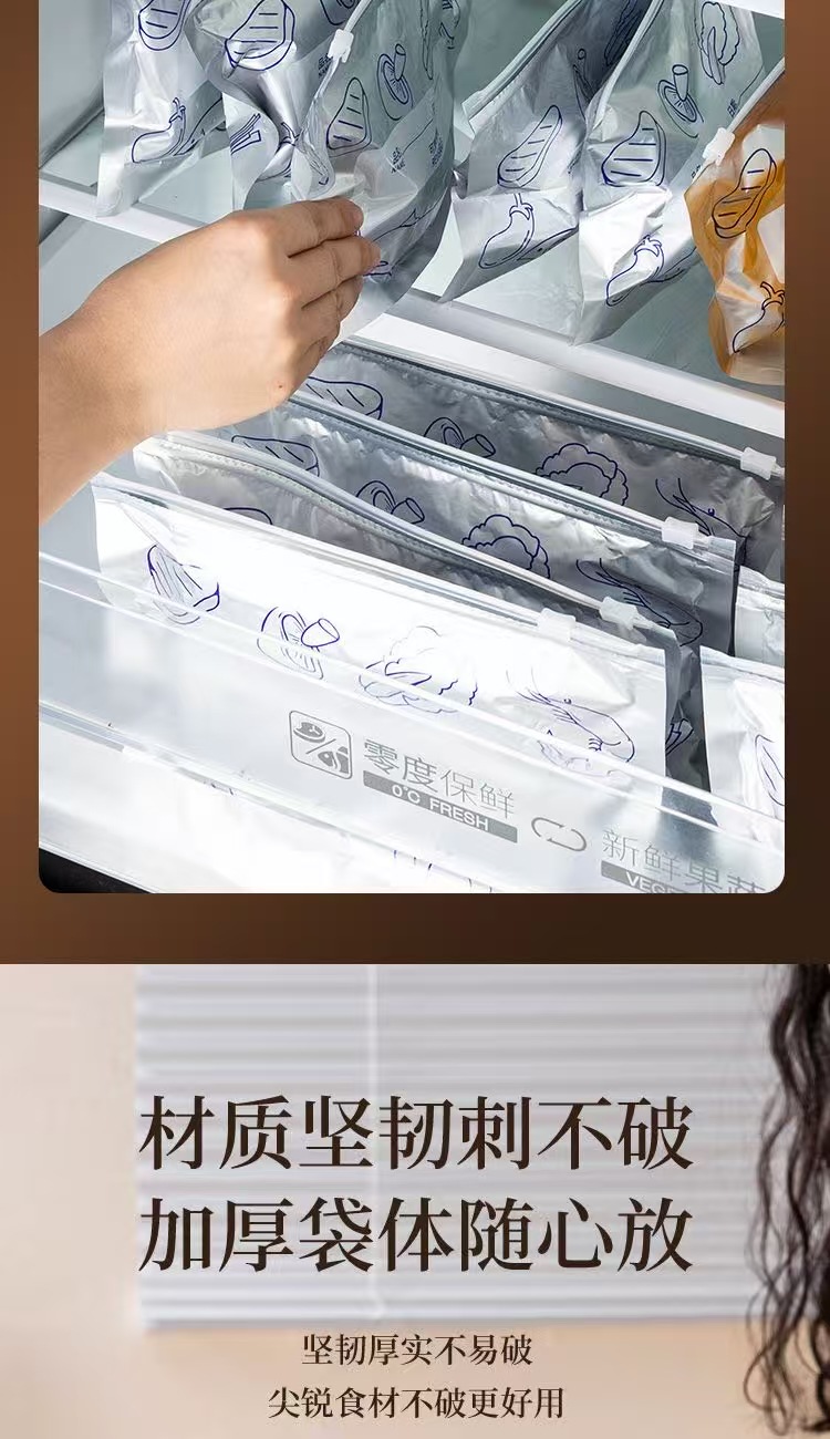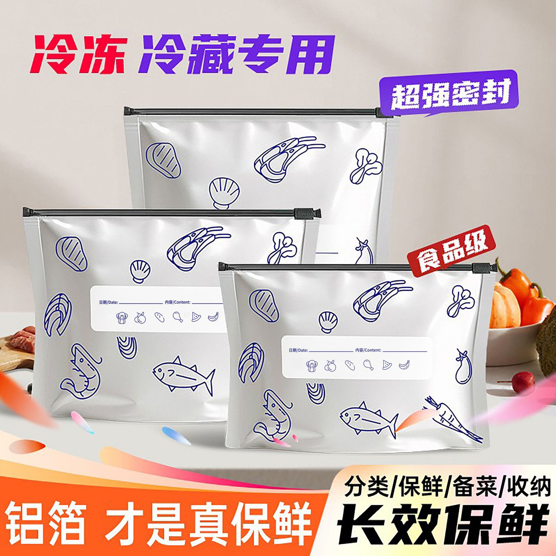 铝箔保鲜袋食品冷藏密封家用自封拉链袋食材果蔬冰箱冻肉收纳袋