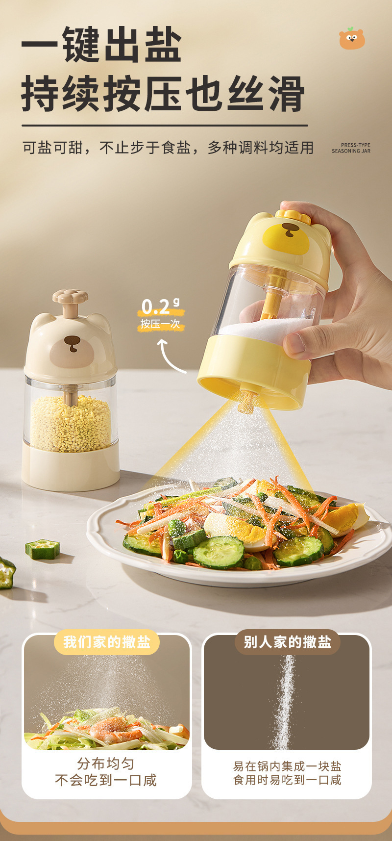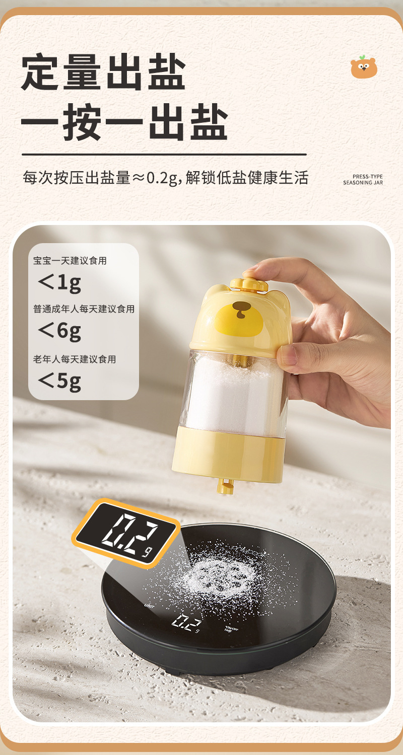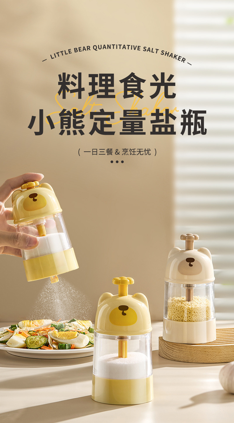 【原创】小熊定量盐罐调味盒厨房调料罐防潮密封调味罐家用调料瓶