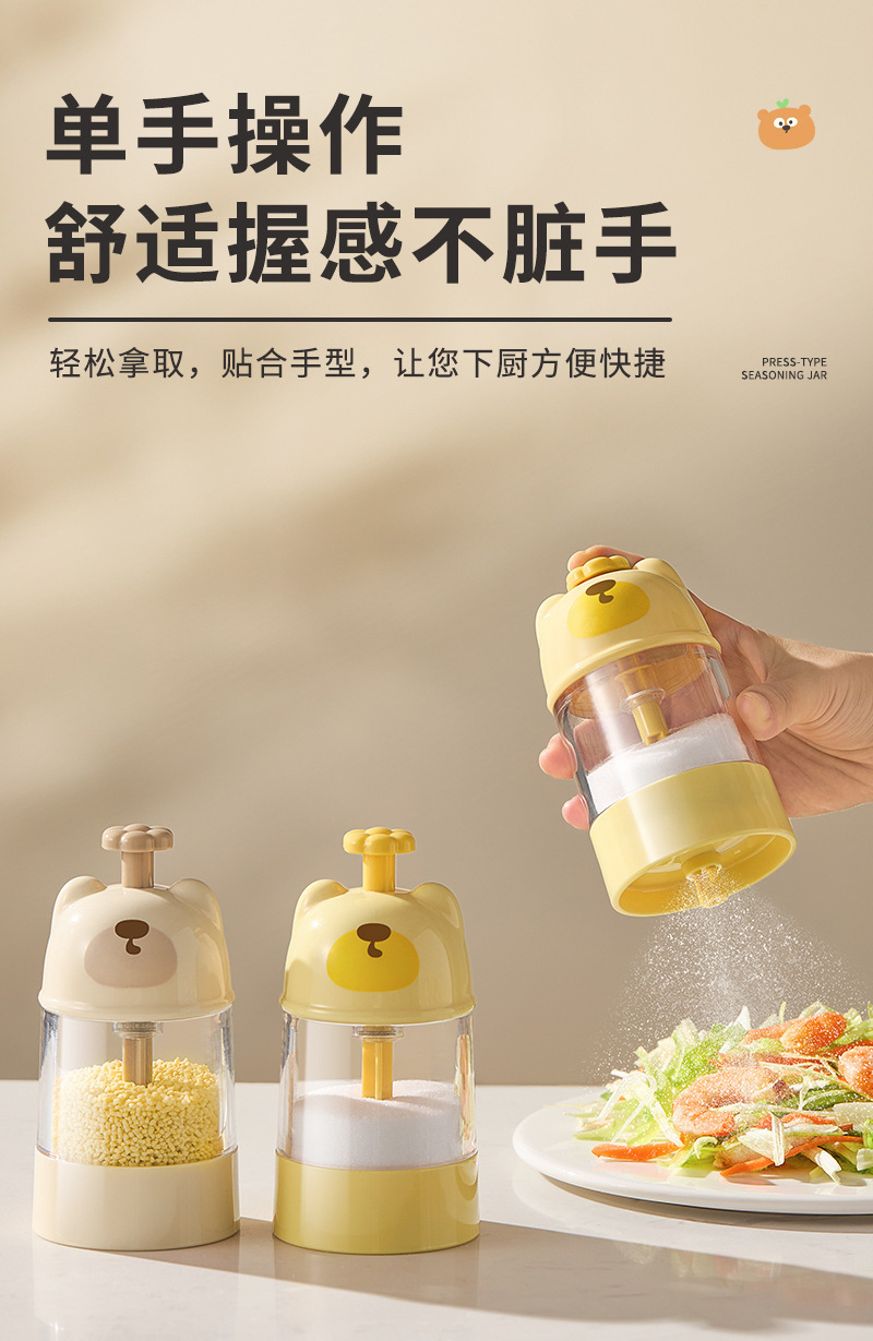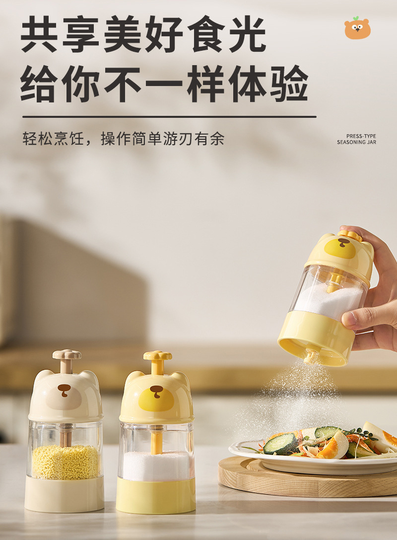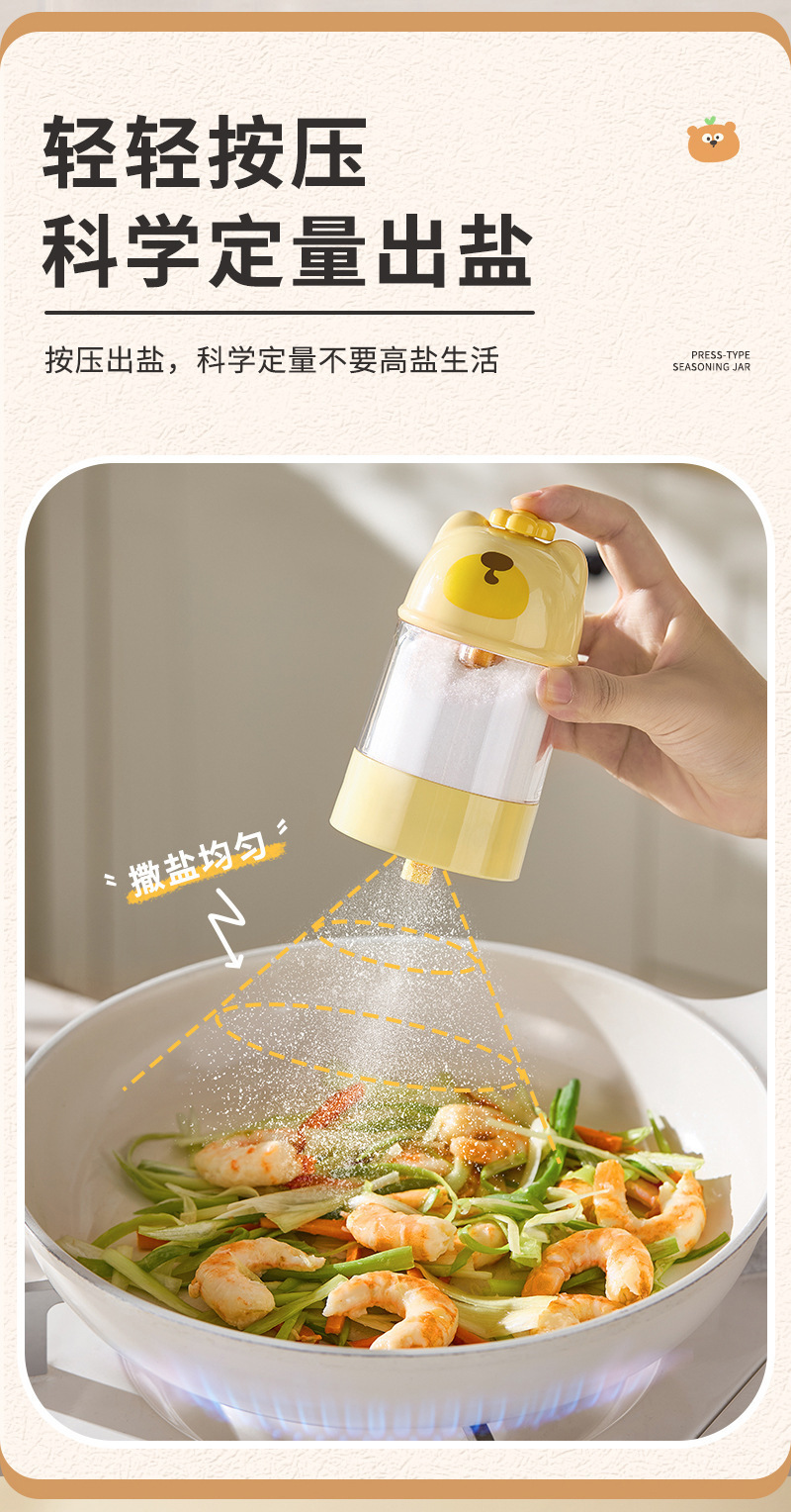 【原创】小熊定量盐罐调味盒厨房调料罐防潮密封调味罐家用调料瓶