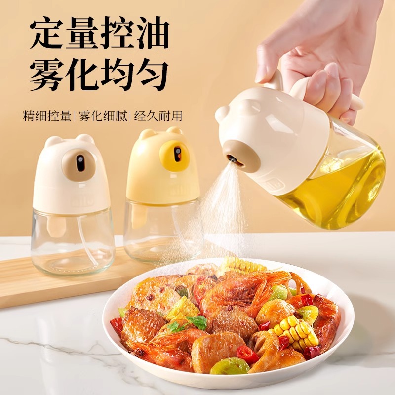 クマオイルスプレーボトルガラスキッチン家庭用エアフライヤーオイルスプレーボトル食用油スプレーボトル霧化ミストオイルタンク