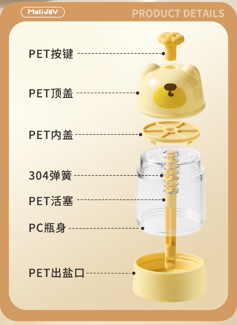 小熊定量盐罐调料盒把手塑料调味罐家用防潮密封厨房分装调味盐瓶