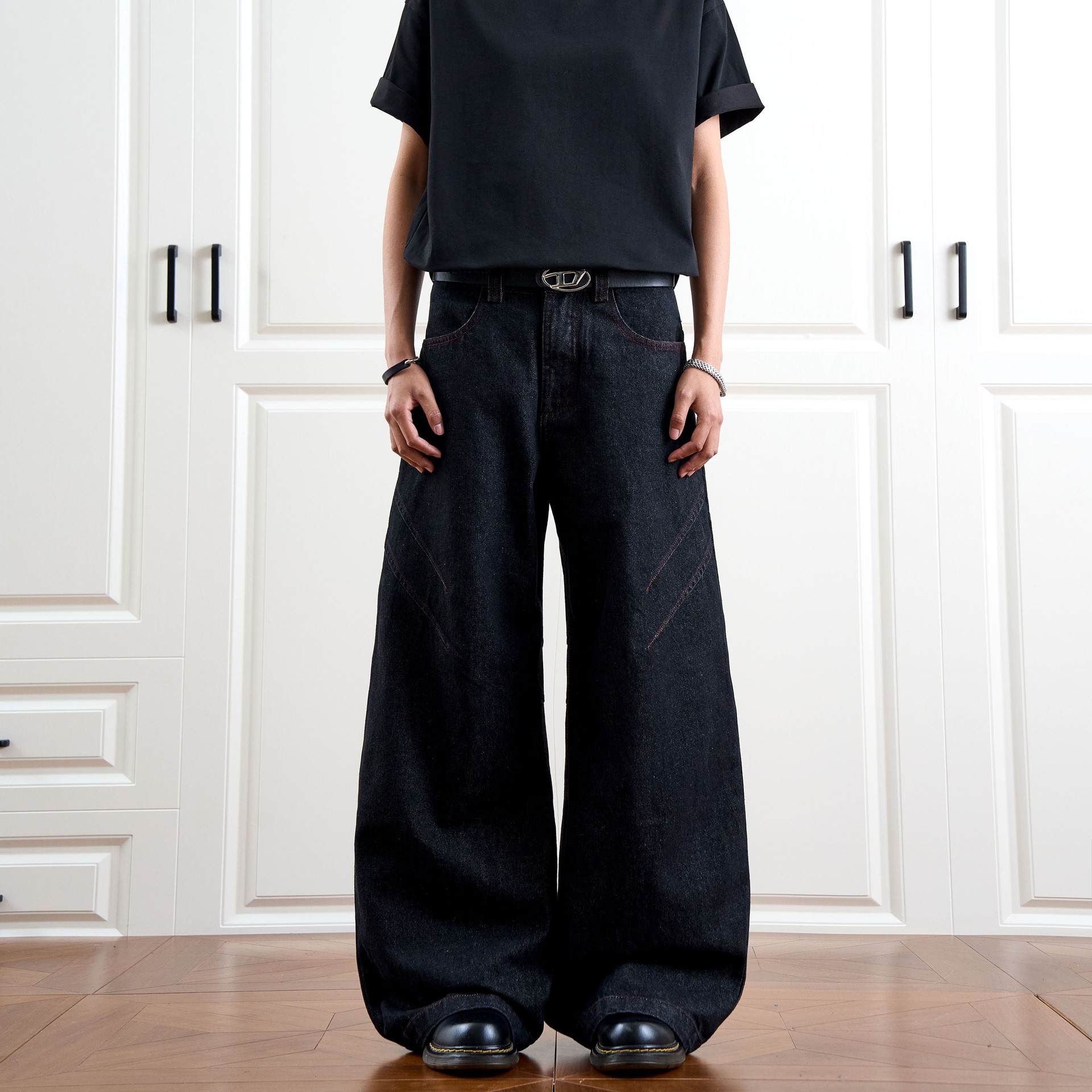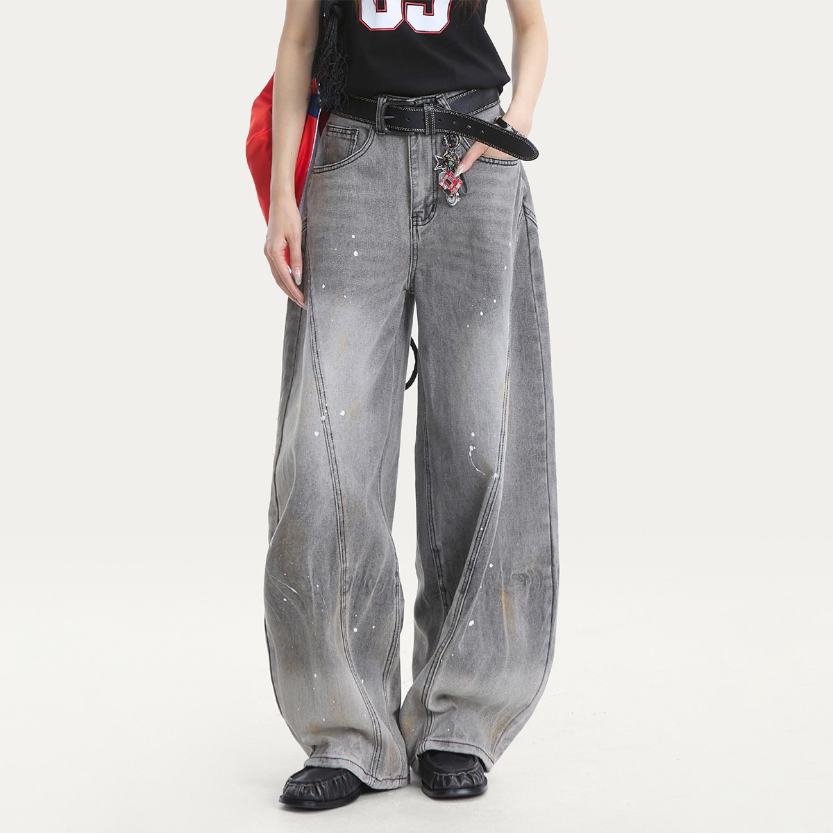 アメリカンレトロなオリジナルカラーのウォッシュスナイパージーンズ、男性と女性用、新しいルーズワイドレッグデザインニッチカジュアルパンツ