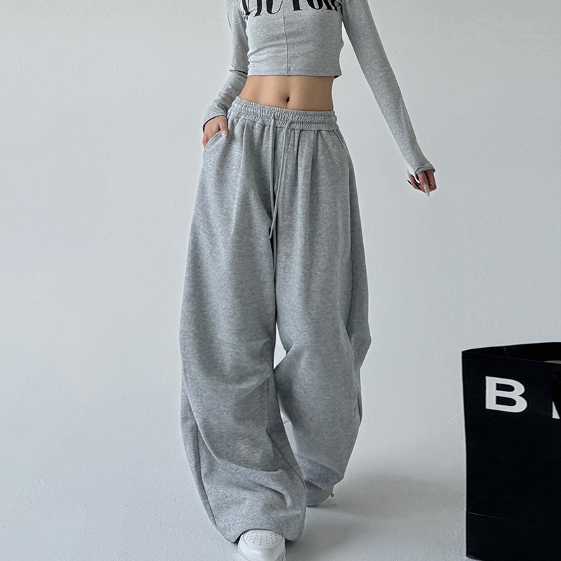 アメリカの灰色のスポーツズボンの女性の春秋2025新型の高腰のまっすぐな筒のゆったりしているレジャーの衛のズボンの工装の広い足のズボン
