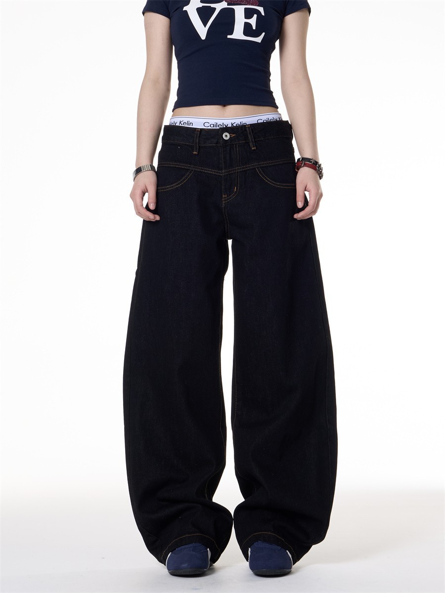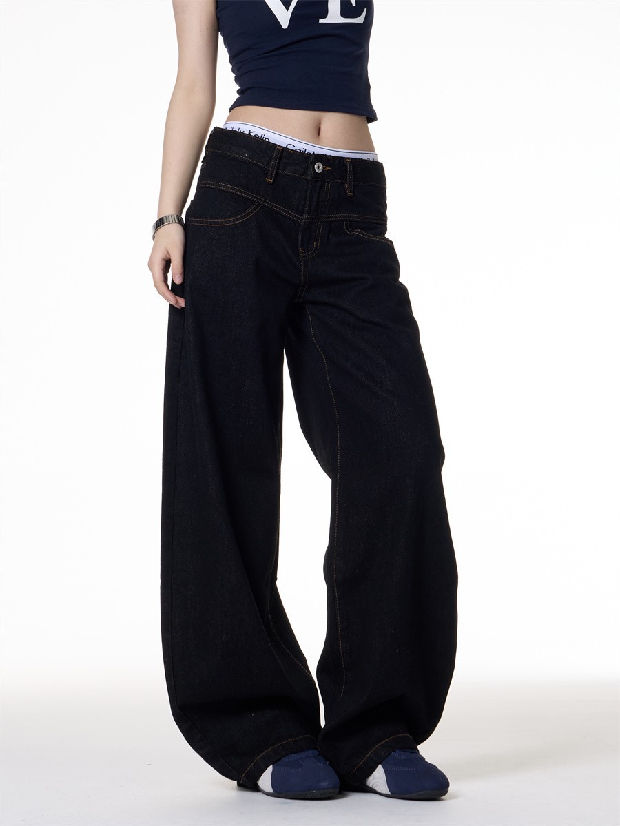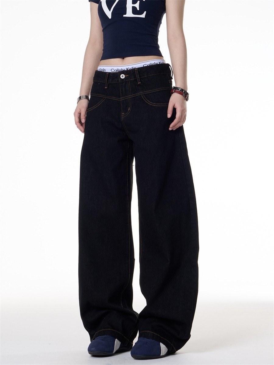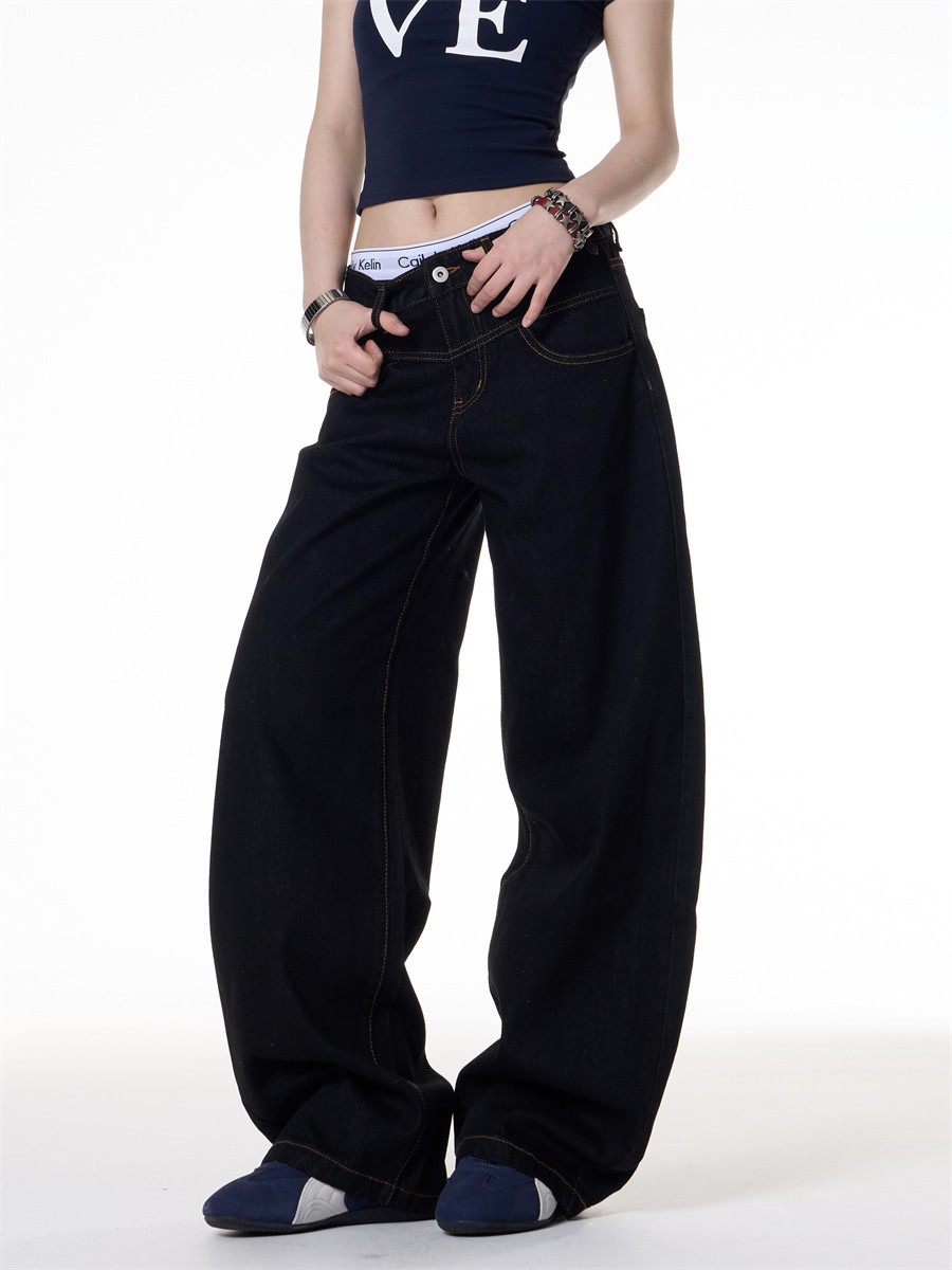 美式复古弯刀牛仔裤女秋季新款宽松显瘦百搭辣妹低腰直筒阔腿裤子