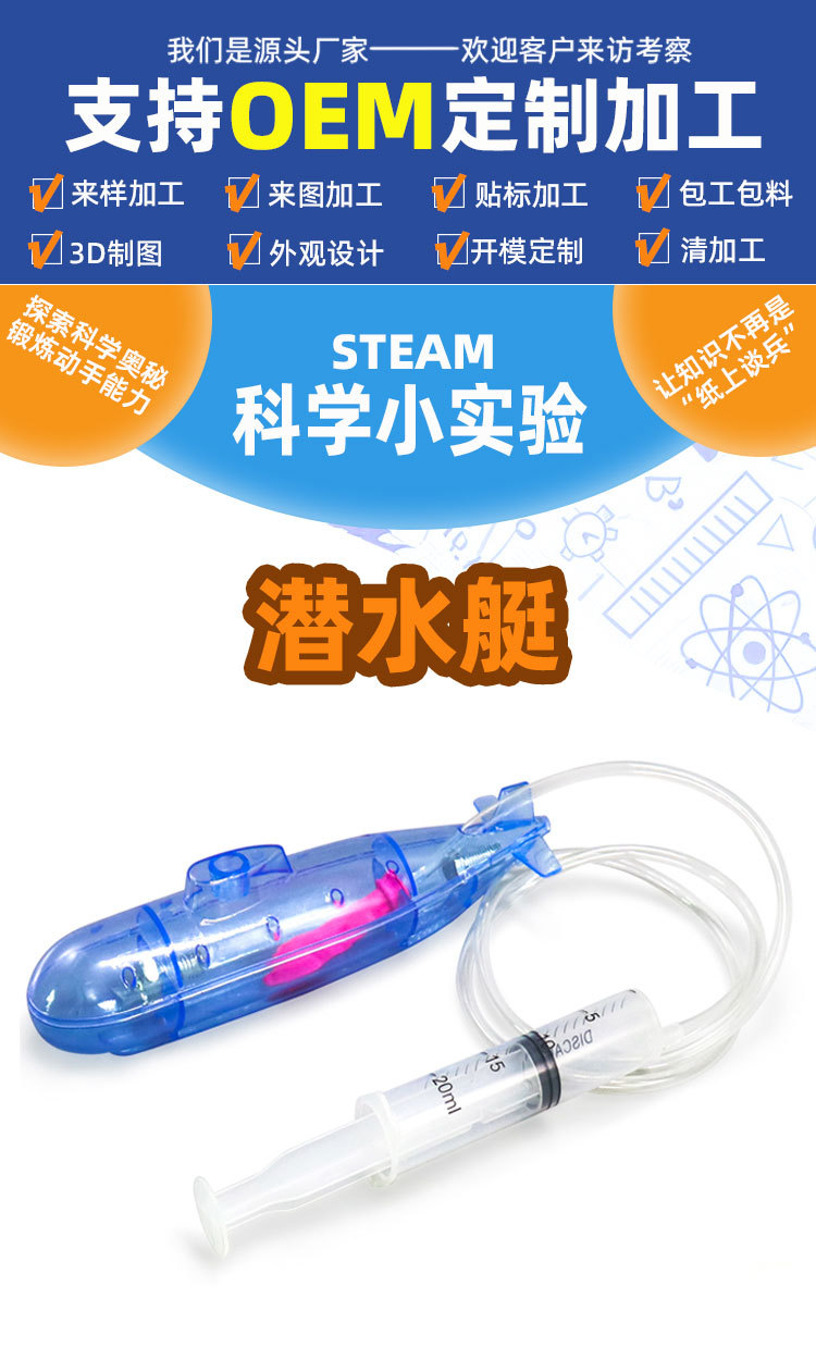 diy自制潜水艇学生手工科技小制作物理浮力实验steam科学教具批发