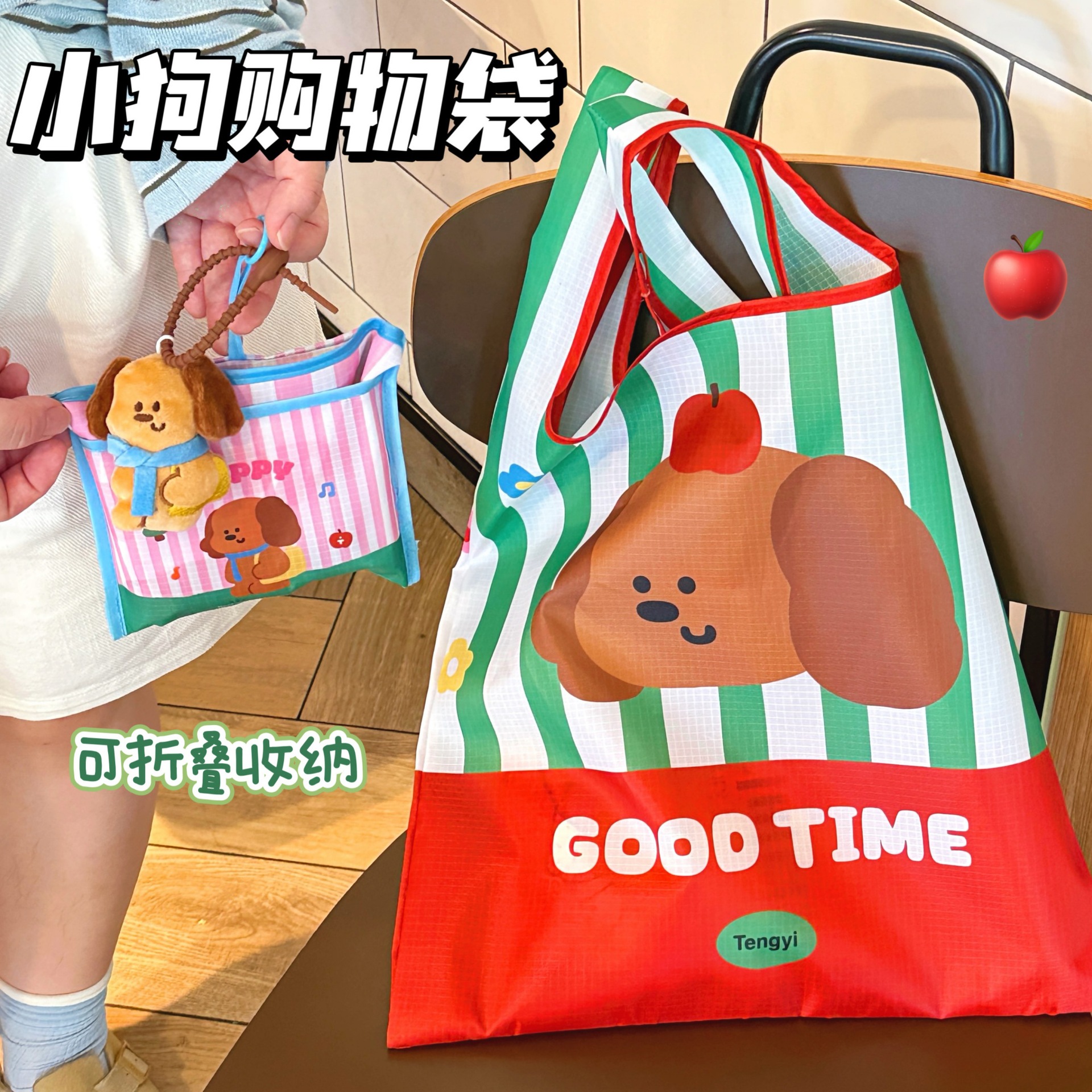 腾亿原创卡通苹果购物袋可收纳折叠环保袋大容量超市购物袋手提袋