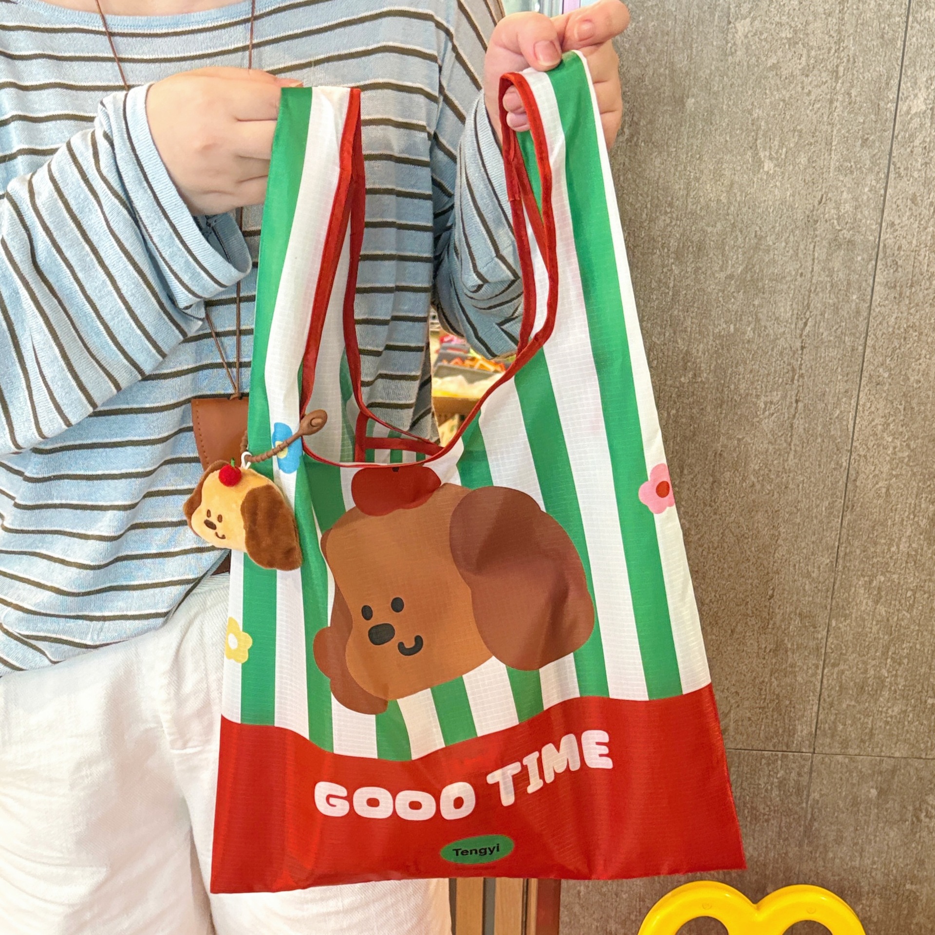 テン億オリジナルins風アニメ子犬収納袋折り畳み可能レジ袋携帯大容量エコバッグ