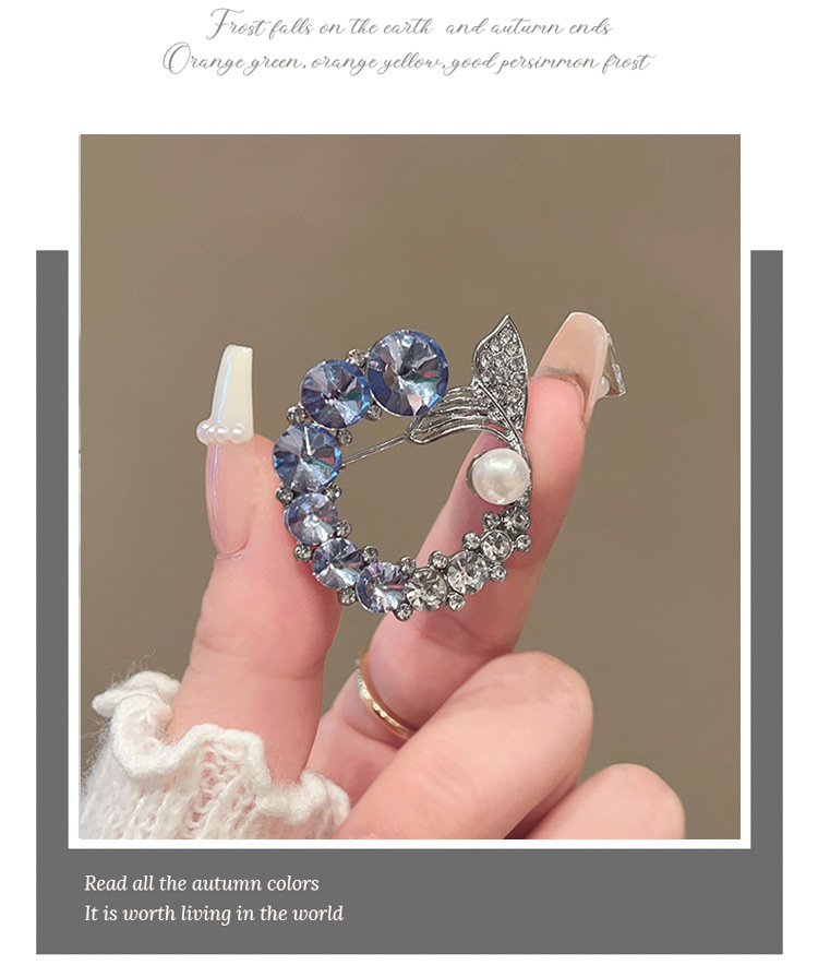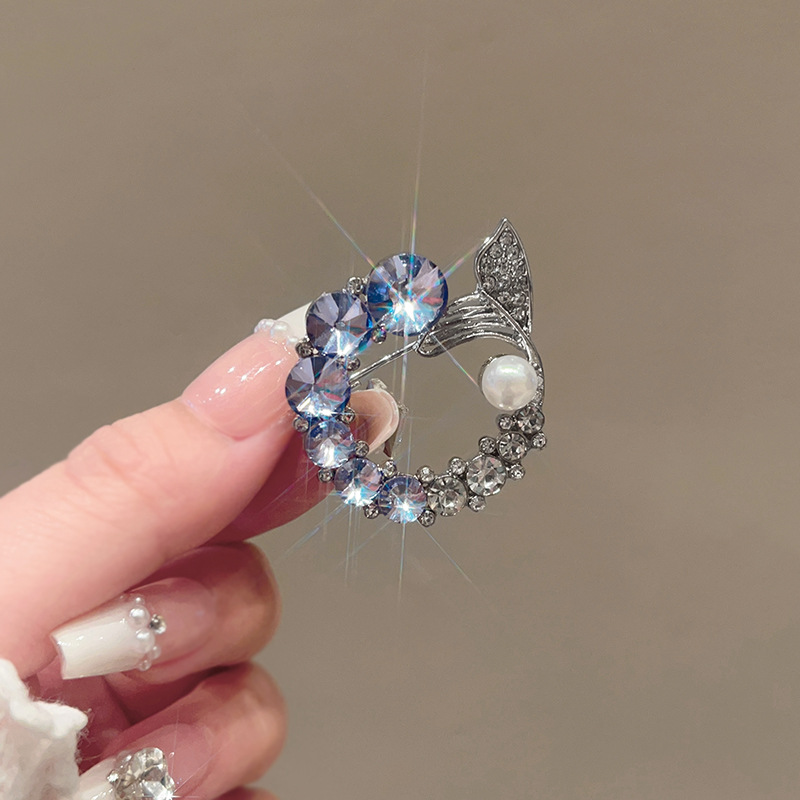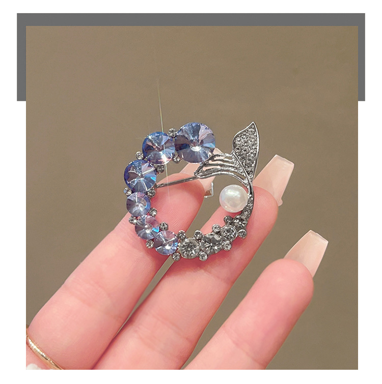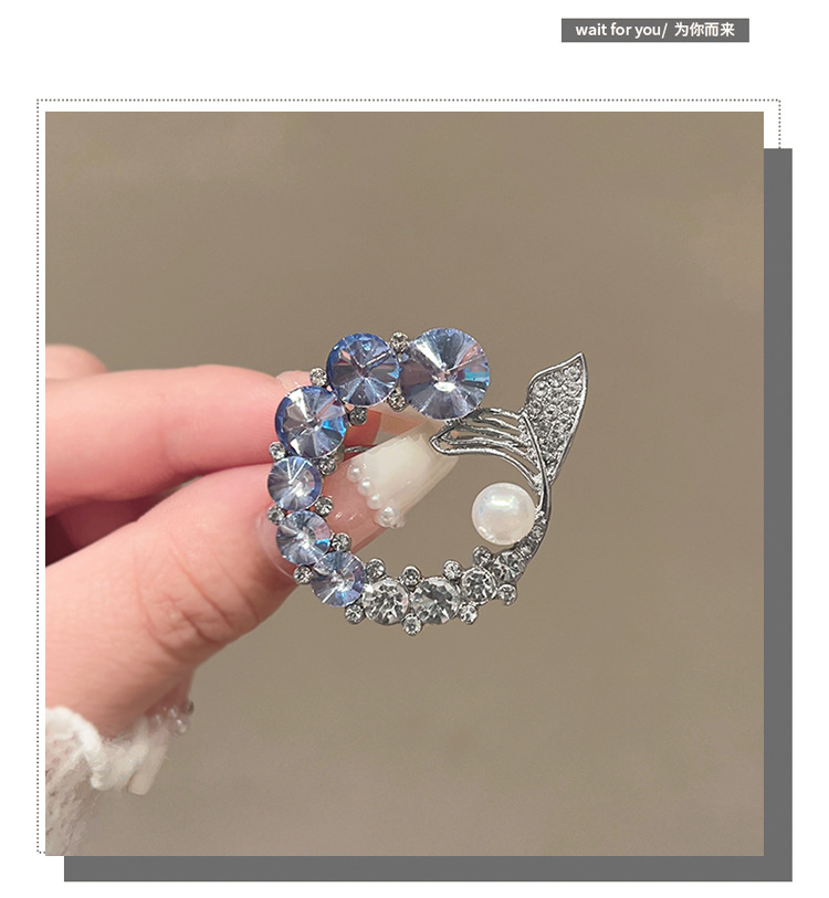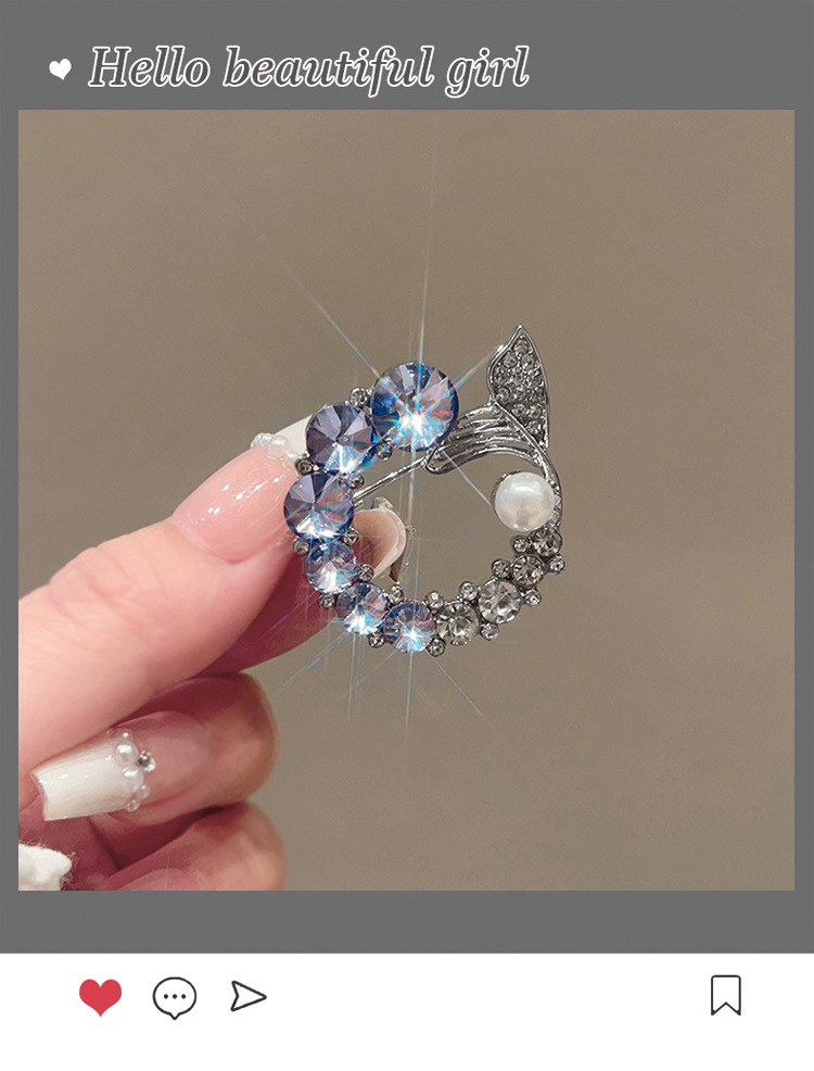 轻奢高级感鱼尾胸针高档设计感仿水晶胸花时尚精致仿珍珠别针配饰