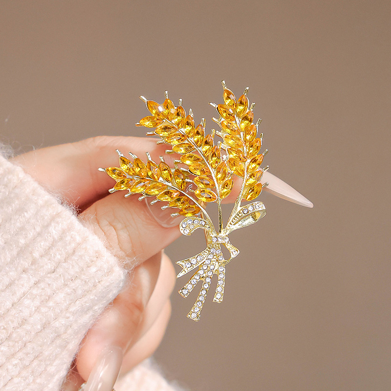 ハイエンドの金色の麦の穂のブローチは高級感があります。