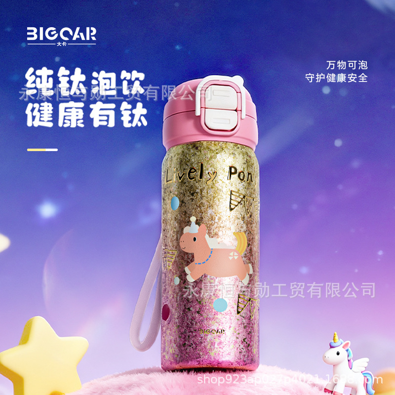 新款纯钛卡通双饮儿童保温杯男女学生吸管杯户外便携大容量水杯
