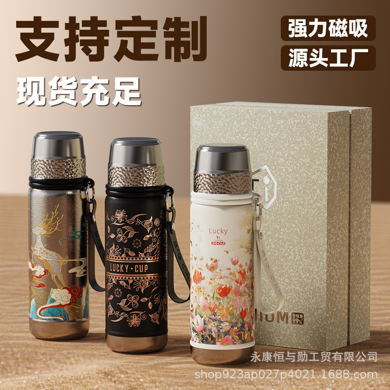 純チタンハイエンドビジネスギフト磁気断熱カップ機械式温度表示大容量断熱ウォーターカップ大容量カスタムポット