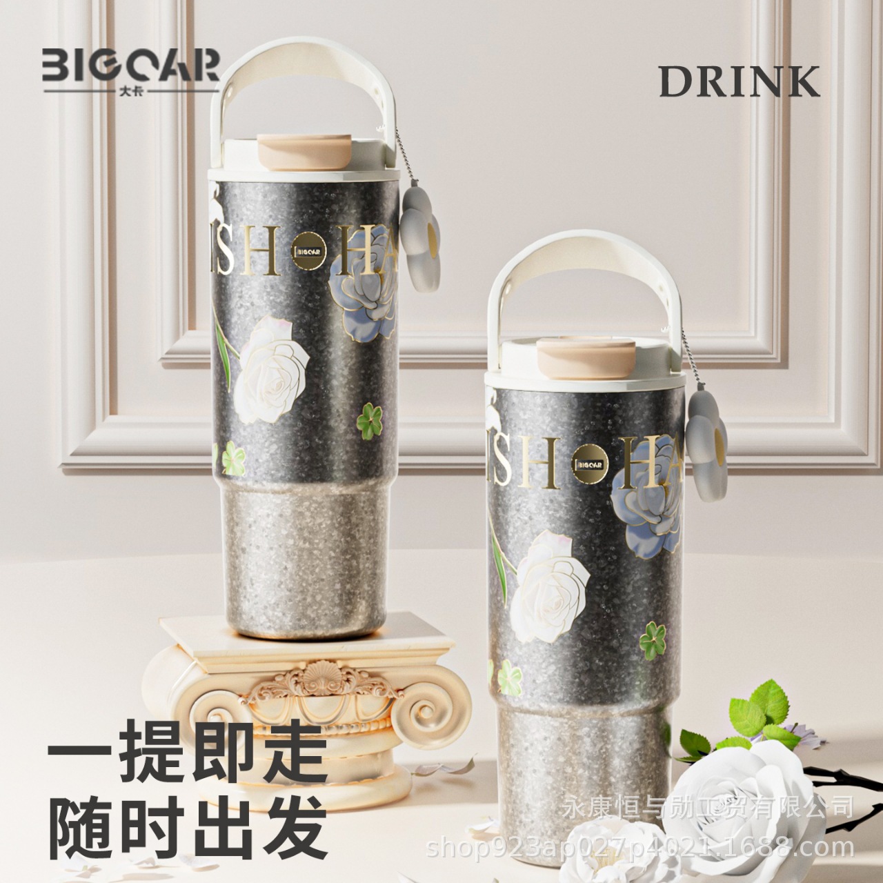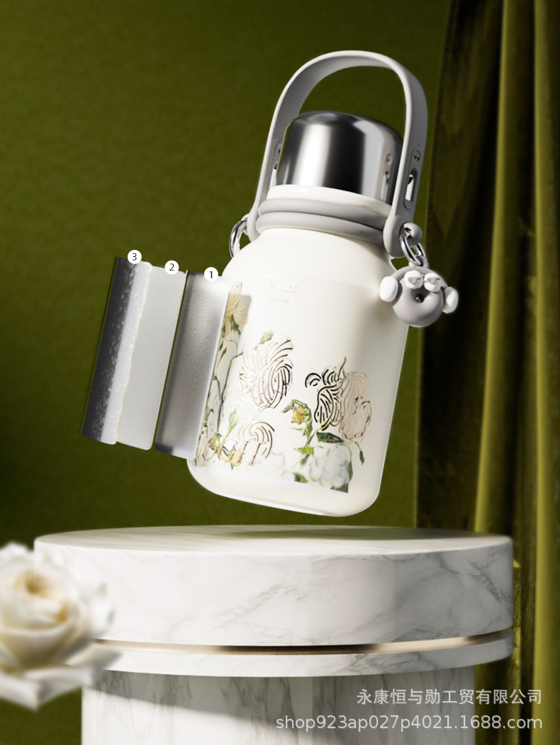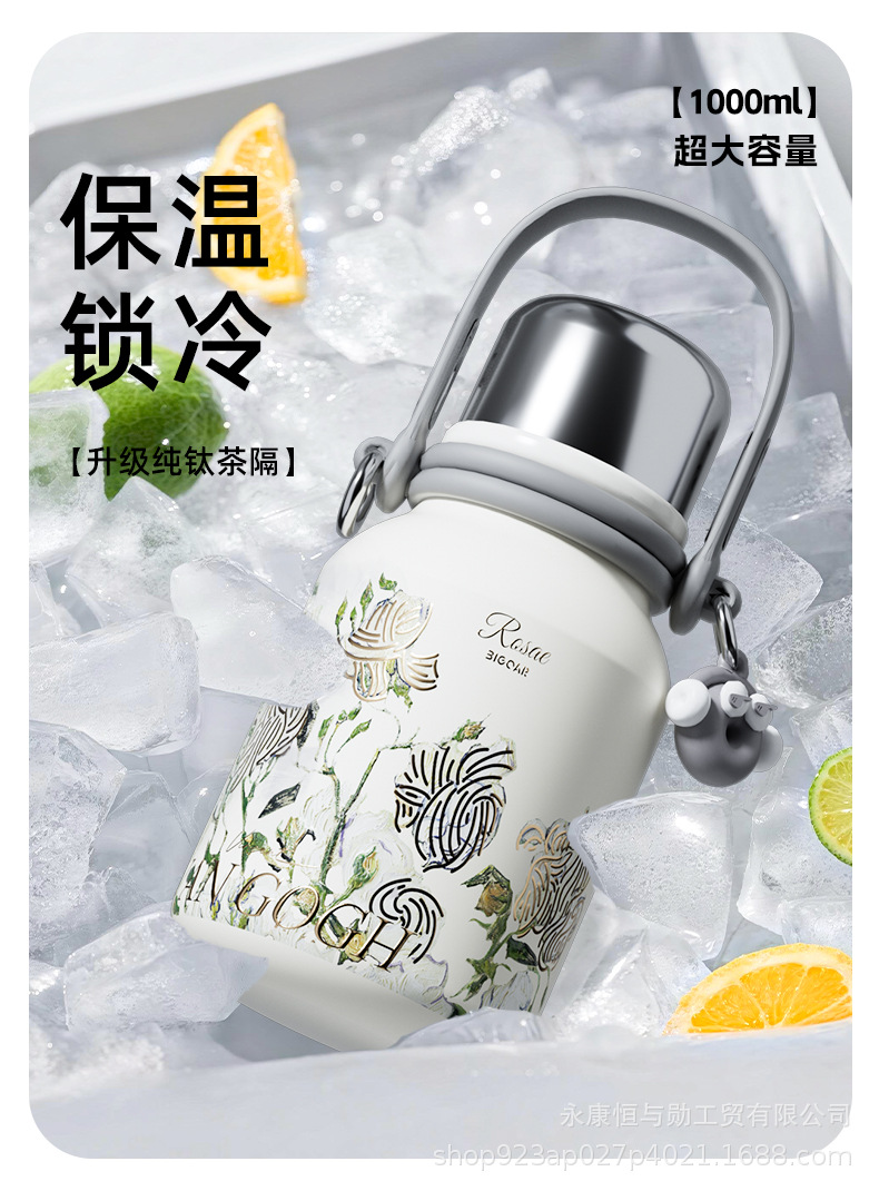 新型純チタン大容量保温ポット携帯ハンドル軽豪華高級感保冷カップ女性高颜値彫刻カップ