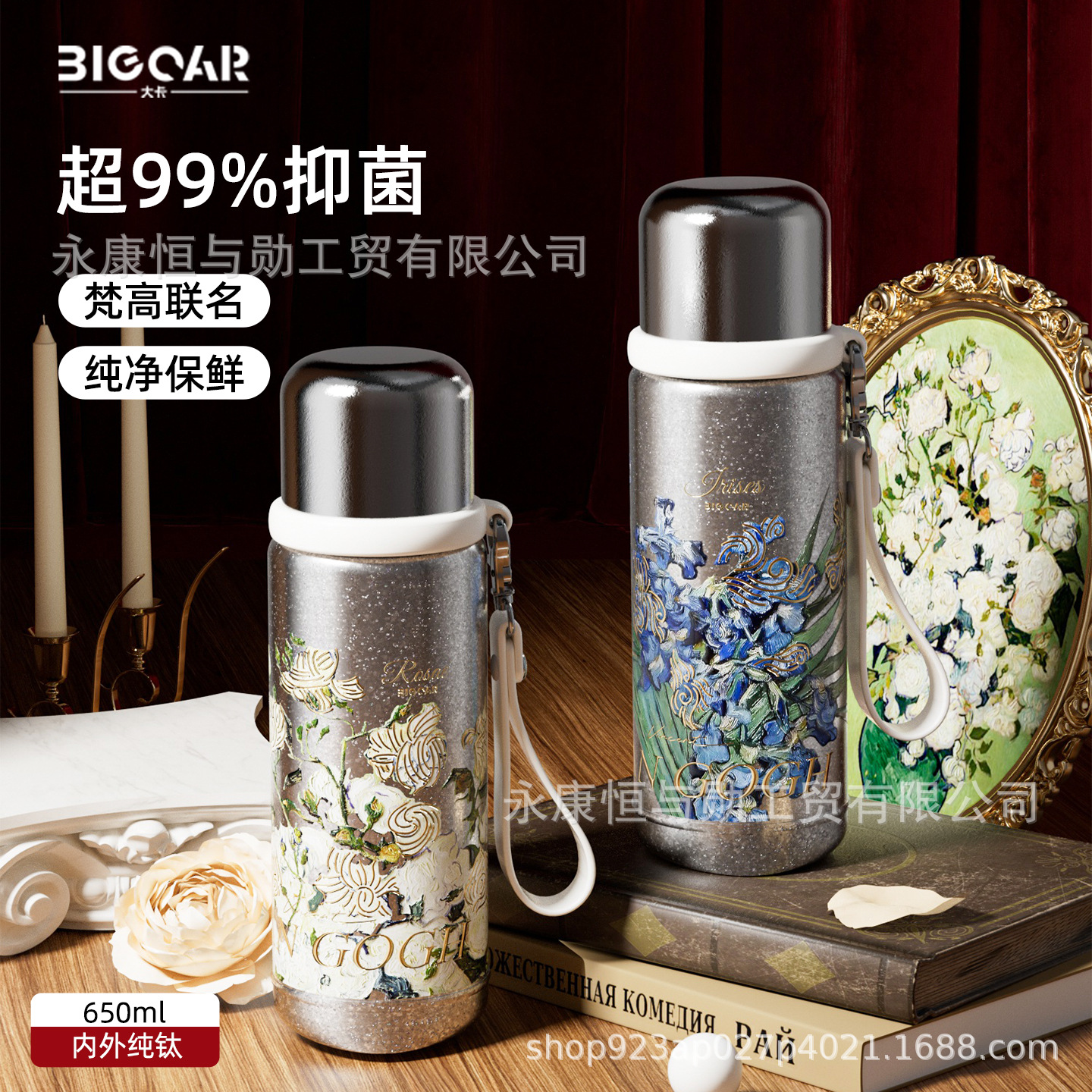 梵高纯钛磁吸保温杯双盖男女高颜值泡茶杯子茶水分离高档礼品定制