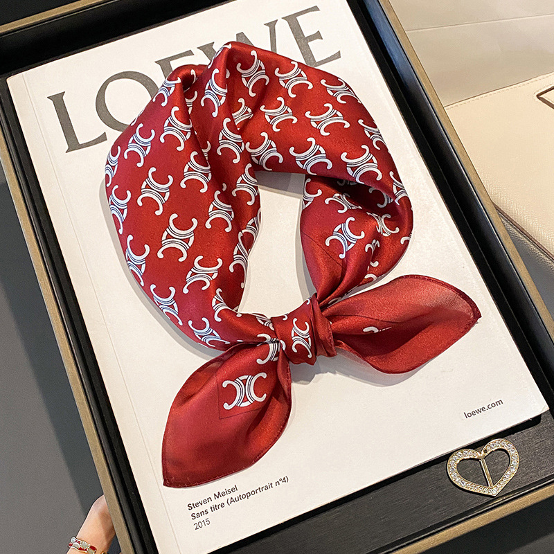 春秋新款真丝小方巾女丝巾53cm100%桑蚕丝领巾腰果围巾女秋冬保暖