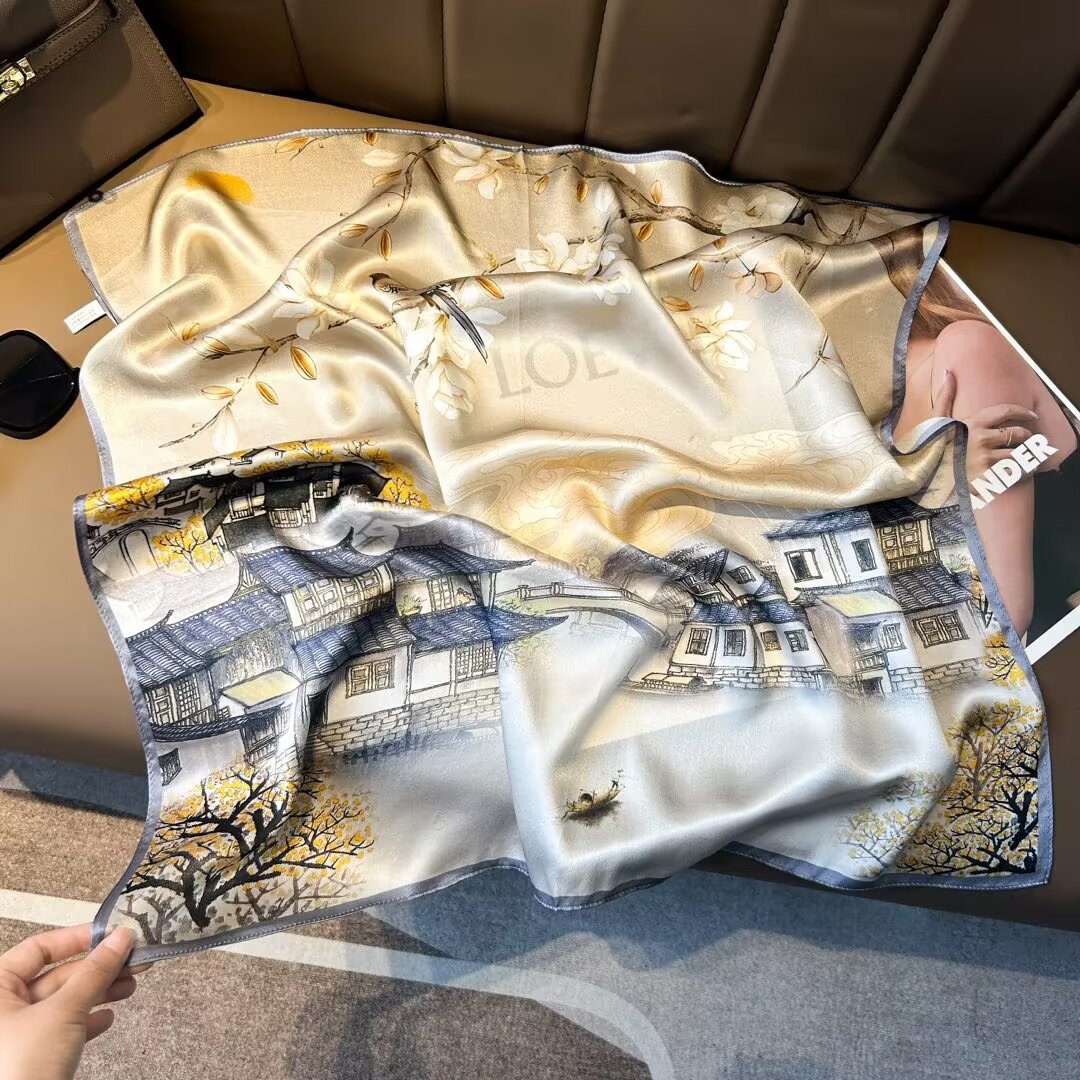 章若楠同金100% 绢糸スカーフ女性スター同金春秋シルクスカーフ高級感マフラー