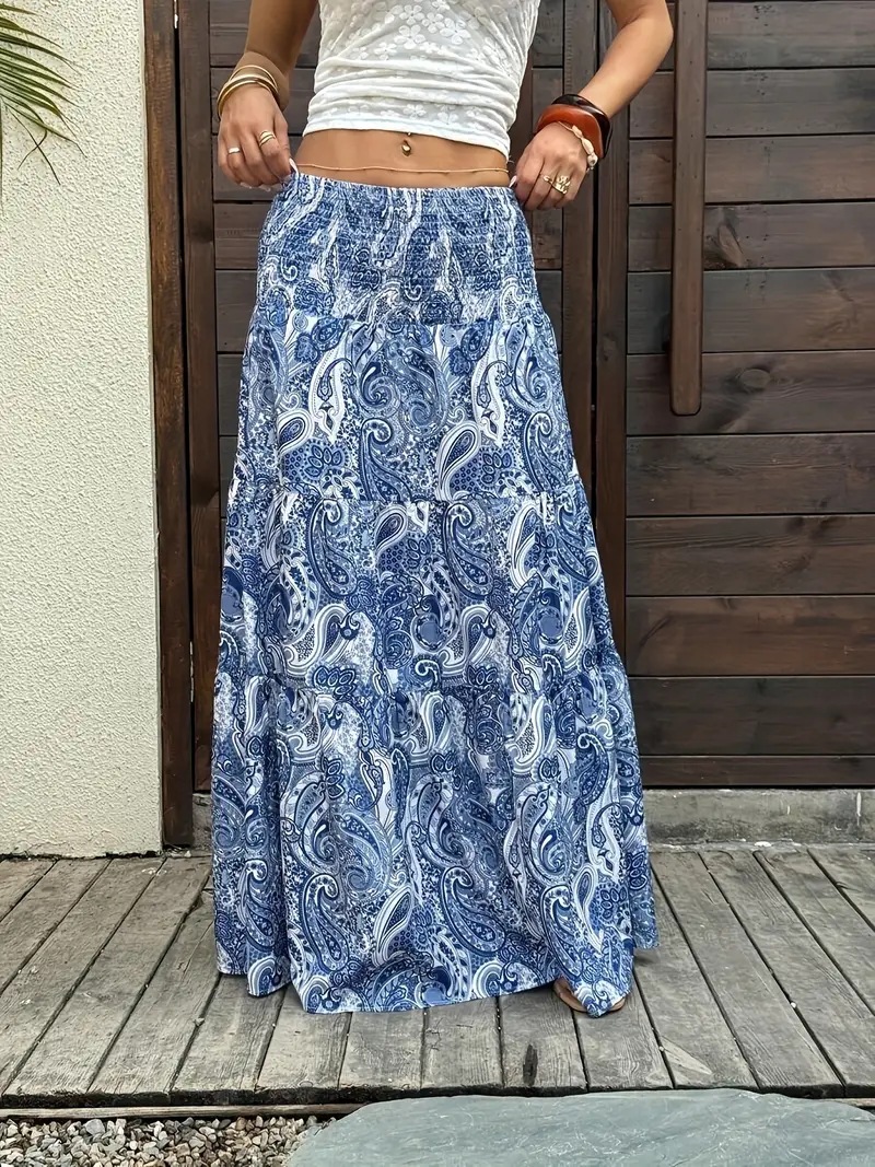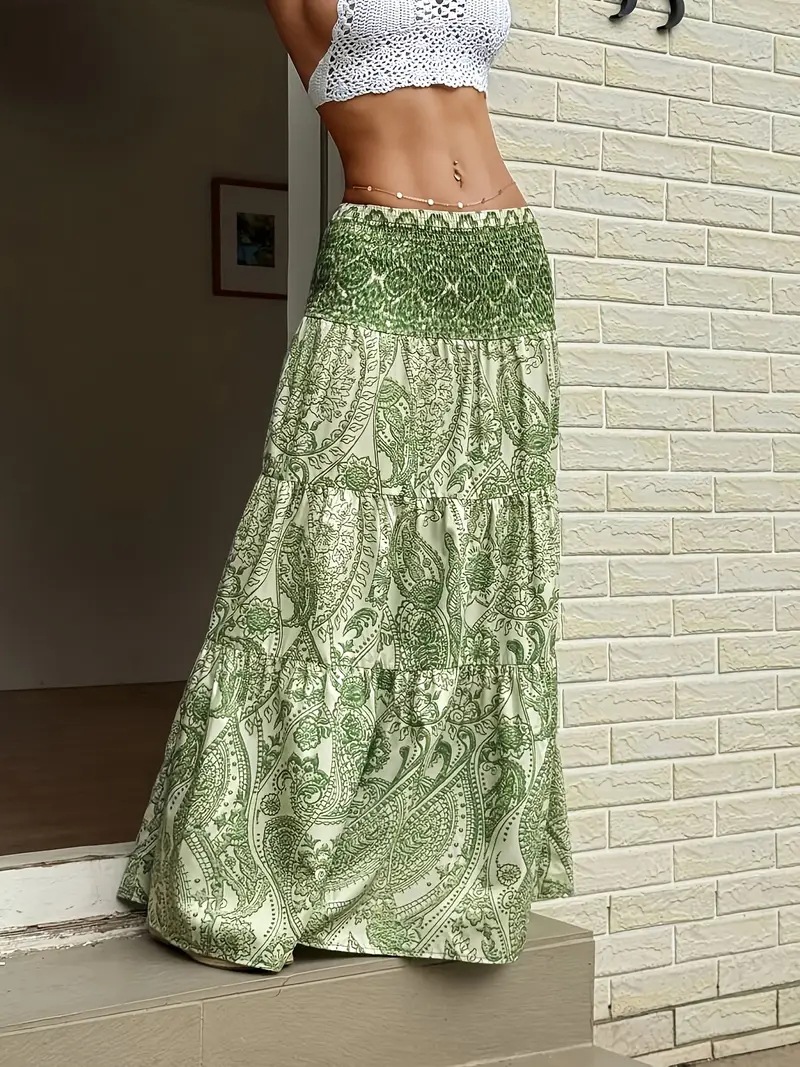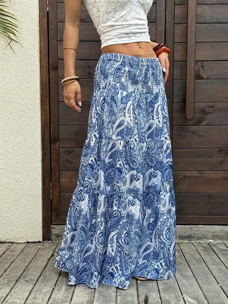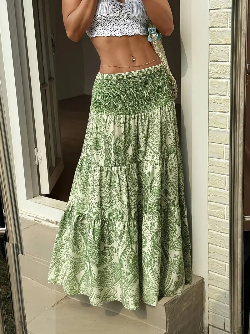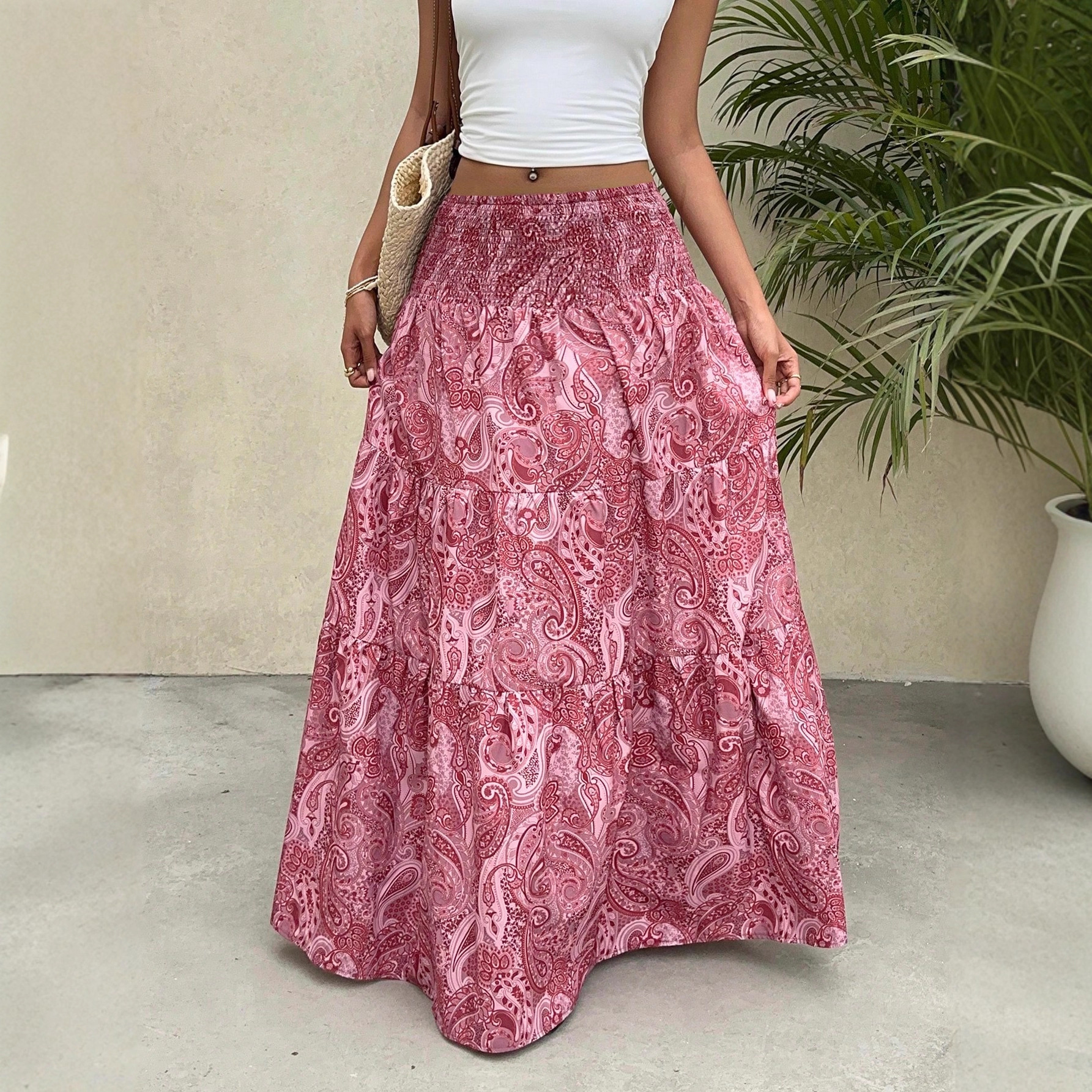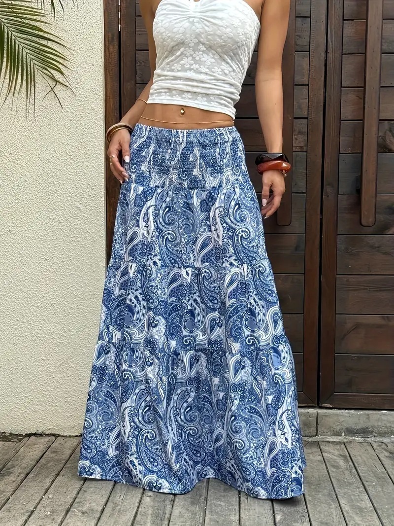 2025 ヨーロッパとアメリカの国境を越えた外国貿易 AliExpress リゾートスタイルのウエストゴムスカートロングスカート